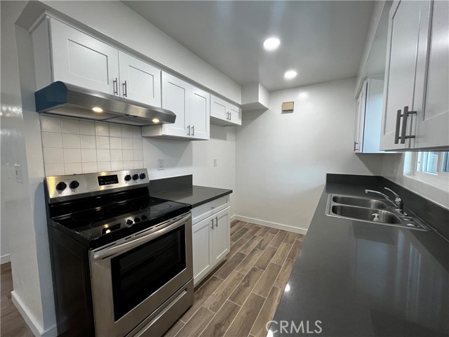 Prime location in West Garden Grove! Beautifully upgraded 2 bedroom, 1.5 bath unit showcasing fresh neutral paint, new vinyl laminate flooring, recessed lighting, ceiling fans, and dual pane windows. The modern kitchen features shaker cabinetry with stove and dishwasher. The upgraded bathroom adds a stylish touch. Enjoy outdoor living on your private patio, plus the convenience of a single-car garage and an additional parking space. Community laundry is available on-site. Ideally located near local parks, with easy access to the 405 and 22 freeways. Situated in a highly rated school district with school ratings 9-10 on Great Schools website.