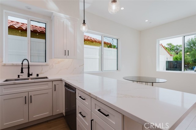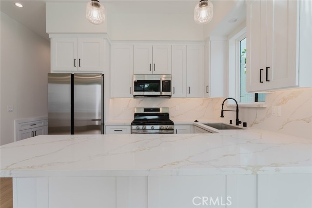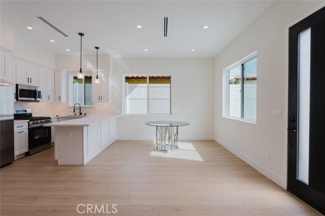 Newly built 2 bedroom 2 bathroom ADU for lease in prime Valley Glen offering approximately 1000 sq ft of modern living space. This thoughtfully designed home features an open concept layout with abundant natural light, wide plank flooring, and a seamless flow between the living, dining, and kitchen areas. The kitchen is equipped with sleek quartz countertops, custom cabinetry, stainless steel appliances, and a large peninsula with bar seating, ideal for everyday living and entertaining. The spacious living area is enhanced by recessed lighting and clean contemporary finishes throughout. Both bedrooms are well sized with ample closet space, including a primary suite with a private en suite bathroom. The bathrooms are tastefully updated with modern vanities, matte black fixtures, and designer tile work. Enjoy a private backyard and a rare 4 to 5 car driveway providing ample off street parking. Additional highlights include in unit laundry and energy efficient features. Conveniently located near shopping, dining, and freeway access, this ADU offers comfort, style, and accessibility in a highly desirable Valley Glen location.