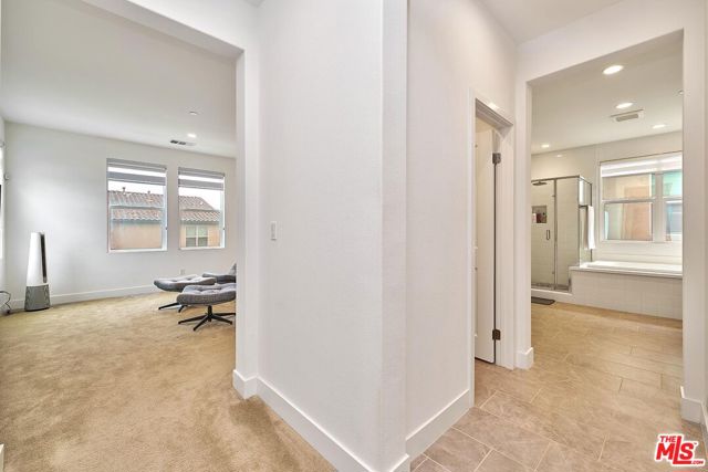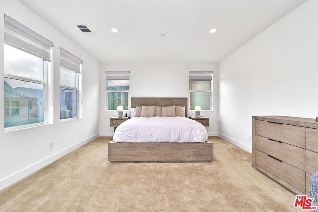 This extensively upgraded DETACHED end-unit is located on one of the most private and desirable lots in the highly sought-after Bedford community, offering exceptional privacy, comfort, and resort-style living. Situated on one of the largest lots in the community, the home enjoys expansive outdoor space surrounded by mature trees, rolling hillside, and beautiful natural views, creating a rare sense of openness and tranquility. Meticulously maintained and thoughtfully upgraded throughout, this home reflects true pride of ownership and presents a rare turnkey leasing opportunity. Offering approximately 3,114 sq ft of bright and open living space, the home features 4 bedrooms and 3 bathrooms, including a convenient main-floor bedroom and full bath with a large walk-in shower. The spacious upstairs loft provides flexible use as a family room, media room, or additional living space. Enjoy exceptional energy efficiency with a Tesla solar system featuring 24 panels, Powerwall, Backup Gateway, and EV charger. The system provides extremely low to near-zero electricity costs and effortless EV charging convenience. Interior features include custom countertops, upgraded cabinetry, crown molding, solid-core doors, premium flooring, custom blinds, cased windows, and designer lighting. The gourmet kitchen is equipped with Whirlpool and Samsung appliances and a beautifully wrapped island, ideal for both daily living and entertaining. The spa-inspired primary bathroom offers dual sinks, a full-height tile shower, and elegant finishes. Additional highlights include epoxy garage flooring with built-in storage and professionally designed landscaping and hardscape. Residents enjoy resort-style amenities including multiple pools and spas, a saltwater lap pool, fitness center, parks, walking trails, dog parks, and clubhouse. Located within walking distance to Bedford Marketplace with Starbucks, dining, and everyday essentials, and offering easy access to the 15 Freeway, this home delivers the perfect balance of luxury, convenience, and lifestyle. A rare opportunity to lease a beautifully upgraded, energy-efficient home in one of the most desirable communities in the area.