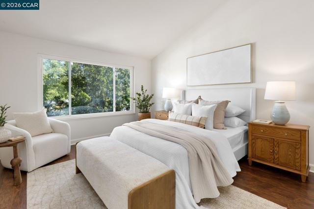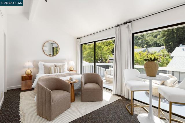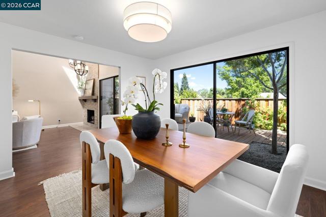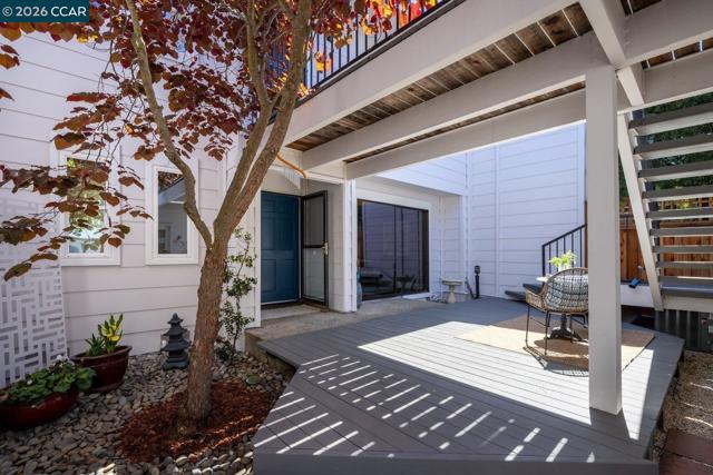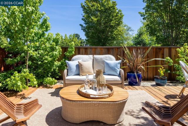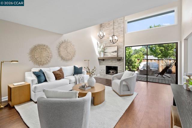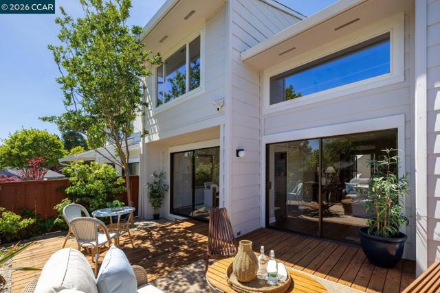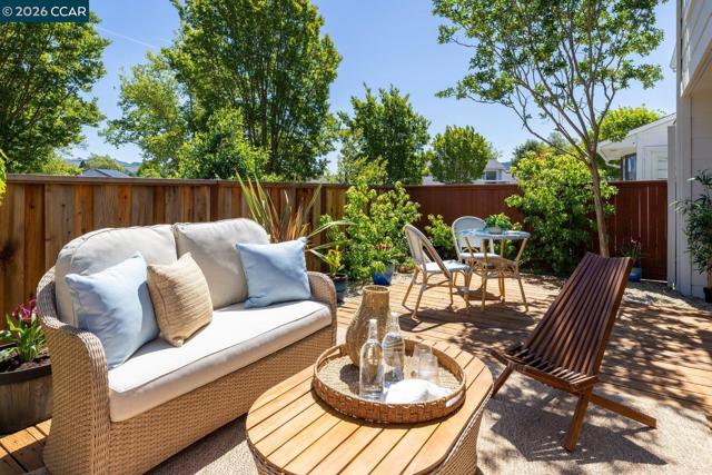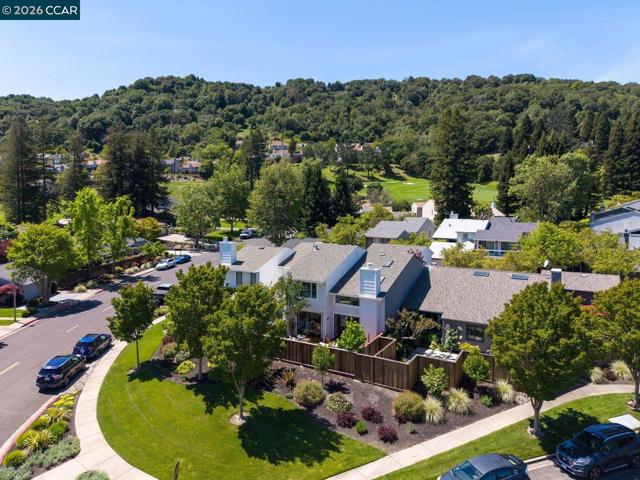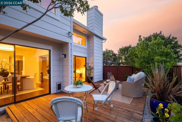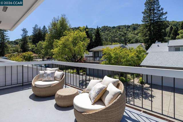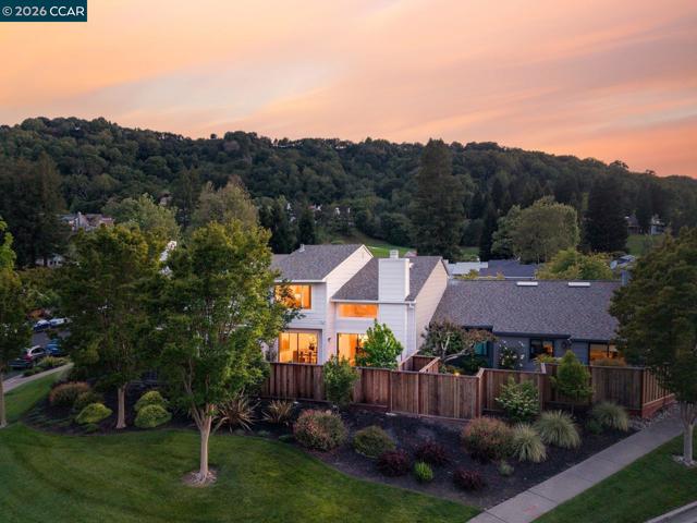 Beautiful renovations and stylish living await you in this exceptional 3-bedroom, 3.5-bath townhome — offering something no other home in the community can...a completely private third bedroom suite with its own separate exterior staircase and entrance, vaulted ceilings, full bathroom, kitchenette, and dedicated mini-split system for year-round heating and A/C comfort. Step inside the main house and the care of this renovation is immediately apparent. Soaring vaulted ceilings, three sun-drenched skylights and sliding glass doors throughout create a home that feels open, airy, and connected to the outdoors at every turn. The living room is a genuine showstopper — anchored by a custom-refaced stone fireplace with a tailored wood mantel and dual chandelier fixtures that feel both dramatic and warm. Wide-plank flooring flows throughout, tying every space together effortlessly. The fully reimagined kitchen features updated cabinetry and appliances, stone countertops, and subway tile — bright, clean, and ready for everything from quiet morning coffee to dinner with friends. Each bathroom has been thoughtfully remodeled, making this home genuinely move-in ready. With a front deck, back deck, and private patio off the third suite, you’ll never struggle to find your perfect spot — whether that’s morning sun over the mountains, afternoon shade, or an evening under the stars. Recently installed fencing and a front gate complete the outdoor experience beautifully. New owners receive immediate family membership to Moraga Country Club — bypassing the $75,000 initiation fee and the multi-year waitlist all new prospective members face. An 18-hole golf course, Junior Olympic pool, tennis and pickleball courts, fitness center, and dining are essentially in your backyard, just across the street. Top-rated schools serve this home — Los Perales Elementary, Joaquin Moraga Intermediate, and the highly regarded Miramonte High School — with a K-8 school bus stop directly across the street. Scenic hiking and biking trails, convenient shopping, and a weekend Farmers Market are just minutes away. Schedule your private showing today.