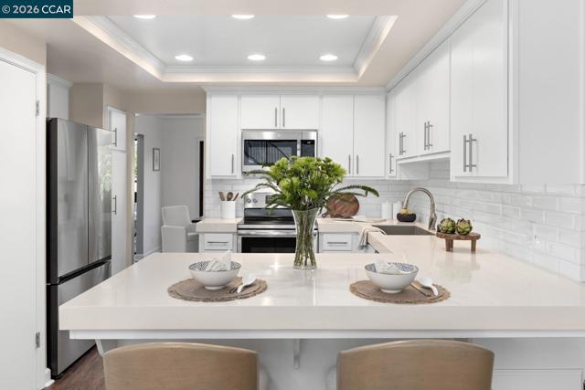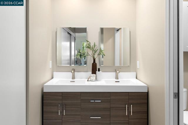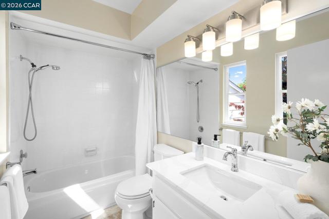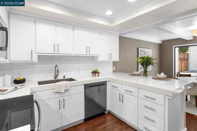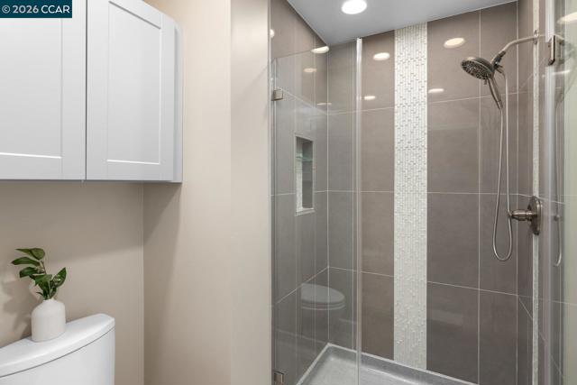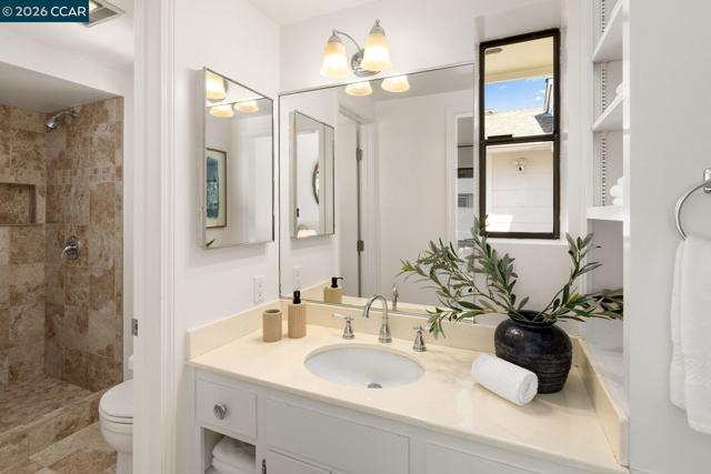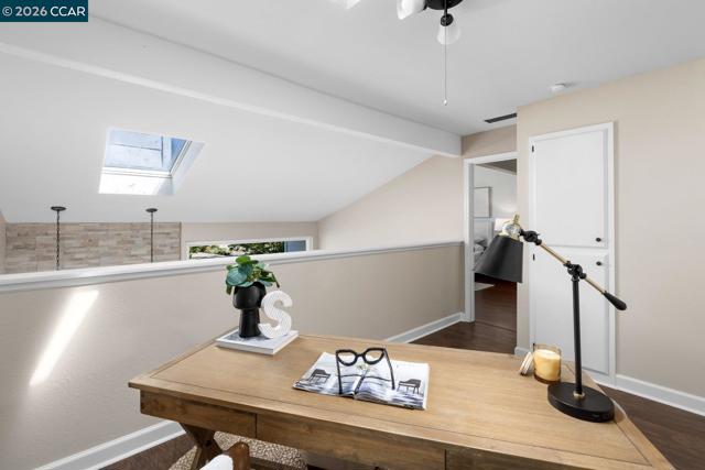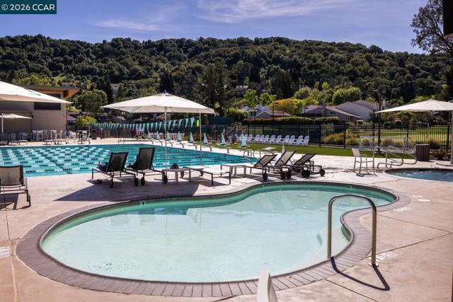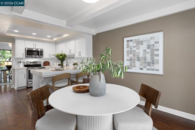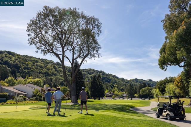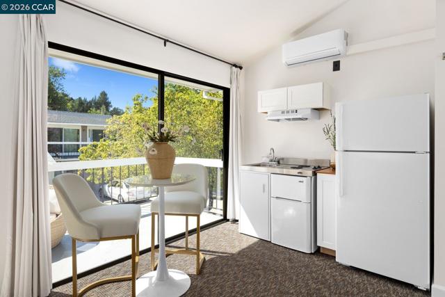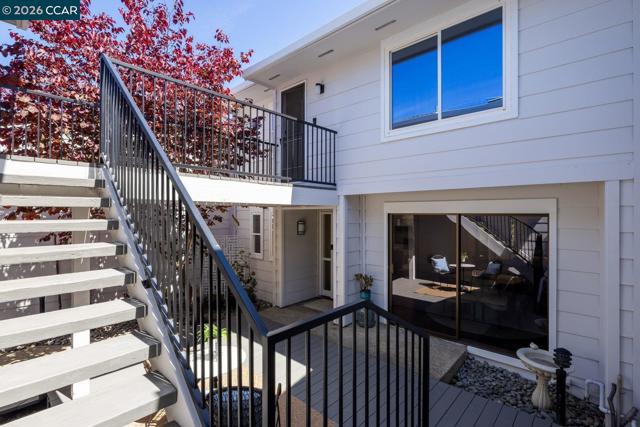 Beautiful renovations and stylish living await you in this exceptional 3-bedroom, 3.5-bath townhome — offering something no other home in the community can...a completely private third bedroom suite with its own separate exterior staircase and entrance, vaulted ceilings, full bathroom, kitchenette, and dedicated mini-split system for year-round heating and A/C comfort. Step inside the main house and the care of this renovation is immediately apparent. Soaring vaulted ceilings, three sun-drenched skylights and sliding glass doors throughout create a home that feels open, airy, and connected to the outdoors at every turn. The living room is a genuine showstopper — anchored by a custom-refaced stone fireplace with a tailored wood mantel and dual chandelier fixtures that feel both dramatic and warm. Wide-plank flooring flows throughout, tying every space together effortlessly. The fully reimagined kitchen features updated cabinetry and appliances, stone countertops, and subway tile — bright, clean, and ready for everything from quiet morning coffee to dinner with friends. Each bathroom has been thoughtfully remodeled, making this home genuinely move-in ready. With a front deck, back deck, and private patio off the third suite, you’ll never struggle to find your perfect spot — whether that’s morning sun over the mountains, afternoon shade, or an evening under the stars. Recently installed fencing and a front gate complete the outdoor experience beautifully. New owners receive immediate family membership to Moraga Country Club — bypassing the $75,000 initiation fee and the multi-year waitlist all new prospective members face. An 18-hole golf course, Junior Olympic pool, tennis and pickleball courts, fitness center, and dining are essentially in your backyard, just across the street. Top-rated schools serve this home — Los Perales Elementary, Joaquin Moraga Intermediate, and the highly regarded Miramonte High School — with a K-8 school bus stop directly across the street. Scenic hiking and biking trails, convenient shopping, and a weekend Farmers Market are just minutes away. Schedule your private showing today.