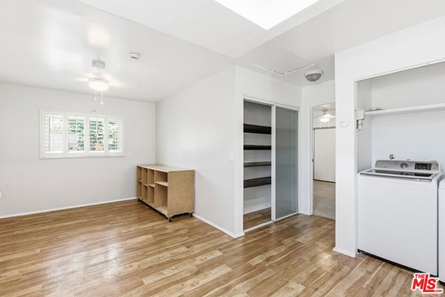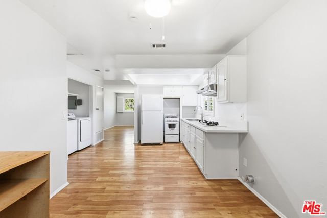Wake up to stunning views of the city and mountains from this charming 3 bedroom top floor unit! The rooms are generously sized and have freshly painted walls and laminate flooring with carpet in the bedrooms. The primary bedroom features a built-in desk and updated bath. The other bedroom has a walk-in closet and shares an en-suite bath with the third bedroom. All bedrooms come with a ceiling fan/light combo. The sunny kitchen has a fridge, gas range, oven, and plenty of counter space with a breakfast bar. There's even a dedicated dining area! You'll have central air/heat and in unit washer/dryer. Top floor unit has access to front yard area, while the bottom floor has access to the backyard. You can also enjoy having TWO dedicated driveway parking spaces.*Please note, the mobile shelf in the kitchen can be removed if you'd like.*This place checks all the right boxes!Located on a quiet hilltop street in Boyle Heights with easy access to Downtown, the 5, 10, and 101. Sorry, no pets.
