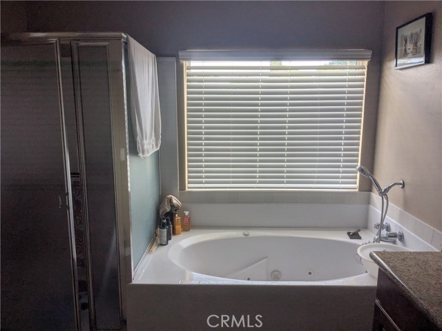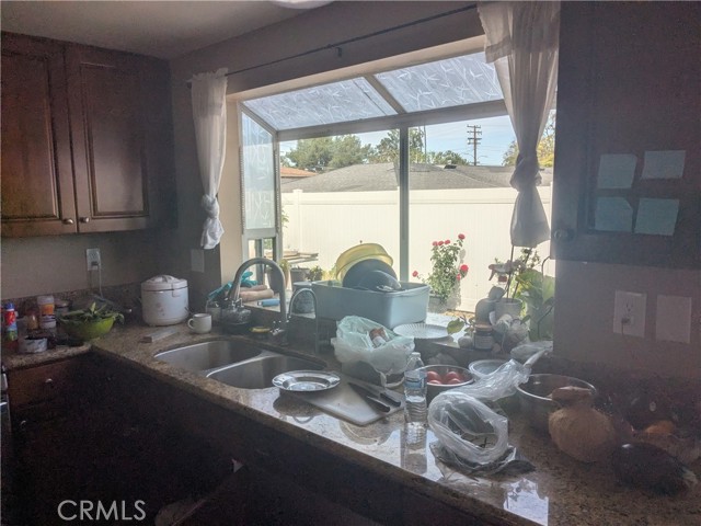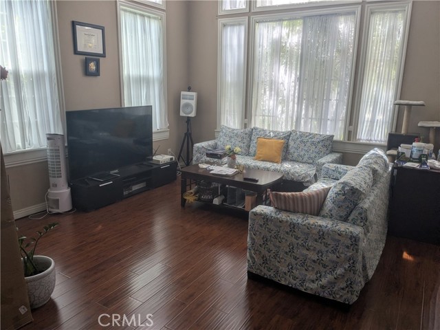 This house is one of 5 homes on a private cul-de-sac lot; high ceiling living room with abundance of natural light thru high windows with two side fireplace that opens up to the family room as well, all thru recessed lights & beautiful laminate floor. A bedroom on 1st floor with full bath convenient for seniors or infants or home office. Kitchen with granite counters, updated cabinets, stainless steel appliances, a 5 burner cook top, a garden window. A double door entry to master bedroom with vaulted ceiling, master bath has a jetted tub for relaxation, separate shower and a walk-in closet. Second floor has 3 additional bedrooms with mirrored wardrobes served by a full bath. Large yard with fruits & vegetable tr RV parking. 2 car garage has direct access with storage & laundry area. Whole house equipped with addional mini split ductless A/Cs units besides central AC & heat. 5 minutes drive or walkable to Anaheim main post office & Anaheim Plaza which has Walmart, Smart & Final, Banks, many restaurants & stores. Freeways 5 & 91 at 10 min. drive.