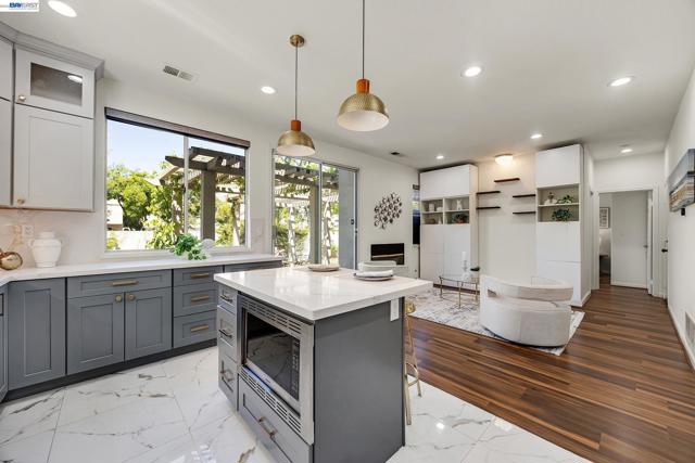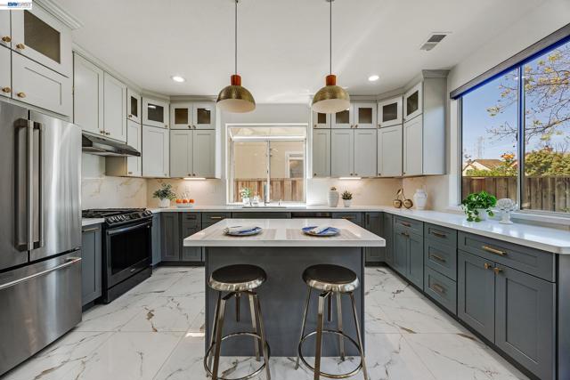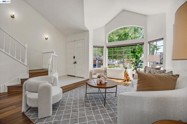 Exquisitely renovated and thoughtfully reimagined, this elegant Milpitas residence blends timeless sophistication with modern comfort in a sought-after neighborhood. Showcasing refined interiors, a light-filled open floor plan, and beautifully curated living spaces, this exceptional home offers an elevated lifestyle designed for both everyday living and effortless entertaining. A dramatic cathedral ceiling entry makes a striking first impression, introducing grand formal living and dining spaces enhanced by soaring ceilings and expansive windows. The airy layout creates a seamless flow while balancing sophistication and warmth. At the heart of the home, the newly renovated gourmet kitchen is a true showpiece, featuring stainless steel appliances, abundant cabinetry, generous prep space, designer backsplash, and a sunlit casual dining area. The kitchen opens seamlessly to the inviting family room, centered around a cozy fireplace, creating the perfect setting for relaxed evenings and memorable gatherings. A highly desirable main-level bedroom with direct access to a full bath offers exceptional flexibility for guests, multigenerational living, or a private office. Upstairs, a spacious landing with built-in cabinetry adds both architectural interest and practical storage. Two generously sized secondary bedrooms are filled with natural light, while the luxurious primary suite serves as a serene retreat with a walk-in closet and spa-inspired ensuite bath featuring dual vanities and a soaking tub. The outdoor setting extends the home’s appeal with a beautifully designed backyard retreat featuring a paved patio beneath a charming pergola, ideal for alfresco dining and entertaining. Mature fruit trees and established landscaping create a private, tranquil garden setting. Extensive renovations and thoughtful upgrades throughout enhance the home with modern finishes and turnkey appeal. Every detail reflects quality, comfort, and style. Ideally located near top-rated schools, parks, shopping, dining, and major commute routes, this exceptional residence offers the perfect blend of luxury, functionality, and convenience. A rare opportunity to own a beautifully updated home where elegant design, versatile living, and an outstanding Milpitas location come together.