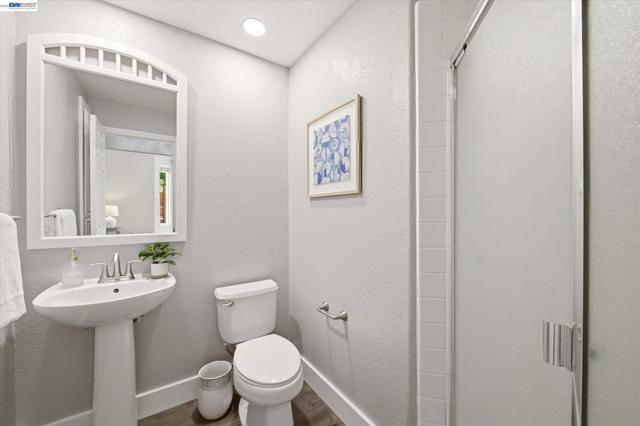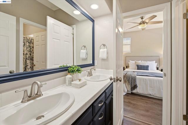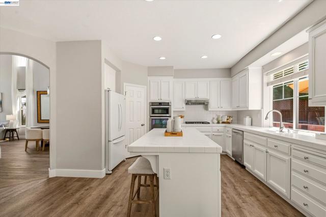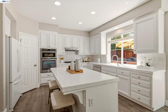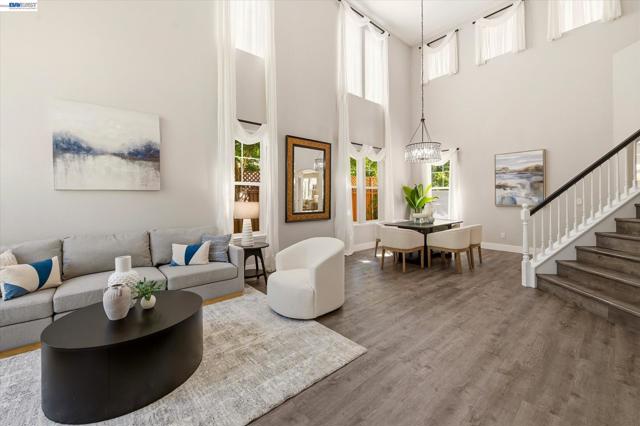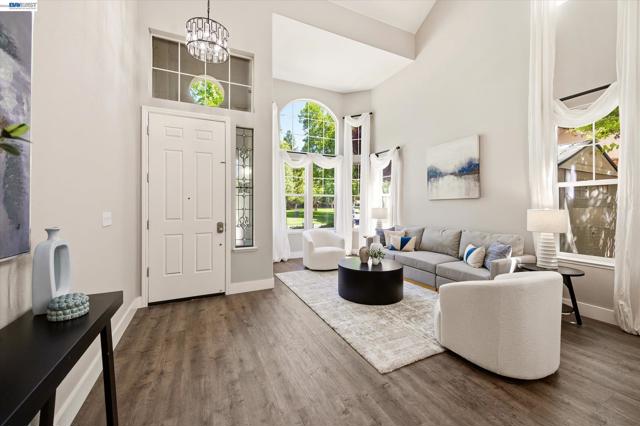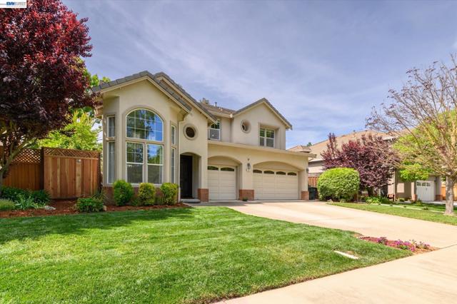 Fantastic east-facing four-bedroom, three-bath home situated directly across from the beautiful 6 acre Hansen Park and just a short walk to top-rated K–12 schools, downtown Pleasanton, and shopping. Enjoy easy commuter access to the 580/680 freeways. Inside, you’re greeted by abundant natural light, soaring 14-foot ceilings, new luxury vinyl flooring, and fresh paint. The eat-in kitchen boasts a breakfast bar, walk-in pantry, gas stove, dishwasher, built-in microwave, and refrigerator. The family room, with a gas fireplace, overlooks the private backyard. A full bedroom and bath on the main level provide flexibility, while the inside laundry includes a high-efficiency LG washer and dryer. Upstairs, the large primary suite offers an updated bath with a soaking tub, walk-in shower, dual vanities, and a walk-in closet. Two additional bedrooms share a Jack-and-Jill bath. The serene backyard, shaded by mature redwoods, includes a large patio, lawn, and outdoor kitchen with a dishwasher and refrigerator. Plus, new redwood fencing, florring lighting paint, HVAC, storage sheds, and a three-car garage with ample storage. This one will go fast, dont miss out!