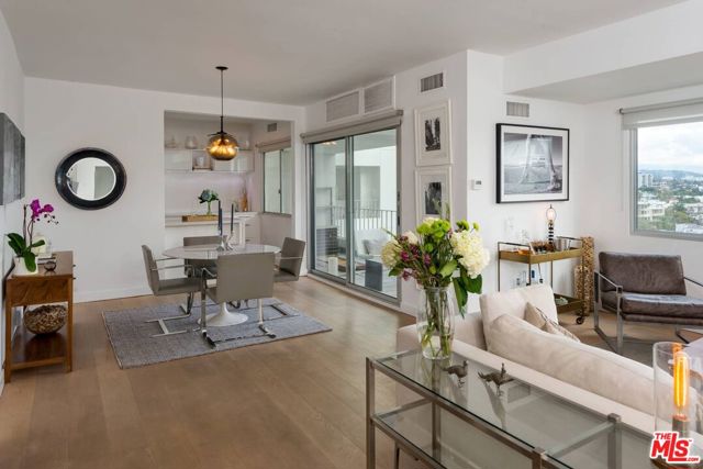 A rare opportunity to reside in one of LA's most prestigious buildings. The remarkable Plaza Towers at 838 Doheny is an iconic mid-century high-rise and premiere full service building. Bask at dramatic views encompassing the Sunset Strip, Hollywood, Downtown LA city lights and distant snow capped mountains from every room. The 1-bed plus den/office features wide-plank white oak flooring, Fleetwood sliding windows and doors. A light filled living room with adjacent den area. Kitchen features Ann Sacks tiles, Caesarstone countertops premium appliances with wine fridge and laundry & opens to the dining room & covered balcony with glass enclosures. The primary bedroom includes two walk-in closets with custom built-ins, and attached marble bathroom. A half bathroom off the entry for guests. Offered fully-furnished and turn-key or unfurnished. Plaza Towers at 838 Doheny has undergone a multi-million dollar revision, setting the bar for luxury living. This full-service building offers an array of luxury amenities, including a luxurious lobby with 24-hour concierge service, valet parking for residents and guests, lounge areas, pool, dressing rooms with showers. The private rooftop hosts a state-of-the-art fitness center, second swimming pool, and a breathtaking rooftop deck featuring panoramic views from city to ocean, fire pits, and outdoor dining areas. Includes water, cable, internet, trash removal, with onsite electric vehicle charging. Lease includes access to all building amenities. Ideally located between Beverly Hills and WeHo. Stroll to nearby cafes, luxury boutiques, refined dining, shopping, coffee, groceries and destination nightlife.