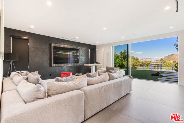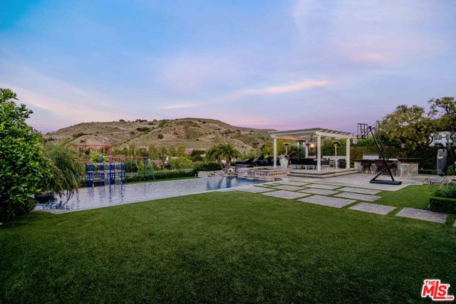 Set within The Oaks of Calabasas, this beautifully remodeled traditional offers 6 bedrooms and 7 bathrooms with an open, light-filled floor plan designed for effortless indoor-outdoor living. The main living areas include a spacious family room, dining area, and chef's kitchen with breakfast nook, all opening to the backyard with a pool, spa, outdoor kitchen, fire pit, and covered patio perfectly positioned to capture sunset canyon and hillside views. The kitchen features a large center island, Miele appliances, dual ovens and a built-in coffee station. A private office with French doors and a main-level guest bedroom provide flexibility, along with a dedicated theater ideal for entertaining. Upstairs, the primary suite offers a private balcony overlooking the serene backyard, along with a spacious bath featuring a large soaking tub and dual vanities. Four additional bedrooms complete the upper level. The home is equipped with a Control4 smart home system and is offered furnished or unfurnished. Residents enjoy access to The Oaks' premier community amenities, including a clubhouse, tennis and sport courts, pool, spa, fitness center, and more all just moments from The Commons' boutiques, dining, and theaters.