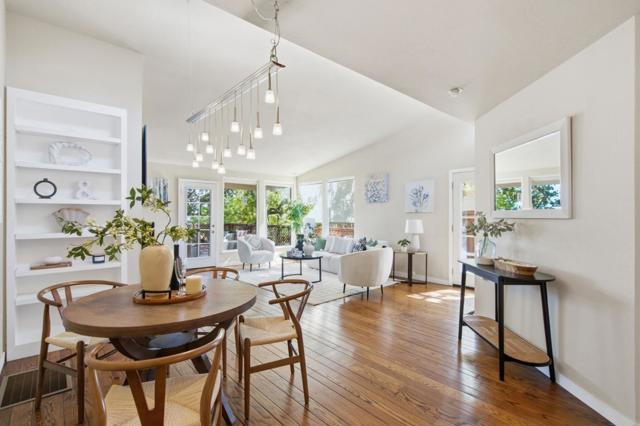 Nestled in picturesque Belmont hills, this charming SFH offers the perfect blend of comfort, style, and privacy. It's surrounded by mature oaks and truly hard to overlook! Featuring 3 bedrooms and 2 bathrooms across approxI 1,520 sq ft of living space on a 6,050 sq ft lot, this beautifully maintained residence, built in 1950, showcases a thoughtfully designed floor plan ideal for modern living. Step inside to discover gleaming hardwood floors, high ceilings, recessed lighting, upgraded HVAC system, and abundant natural light streaming through double-pane windows. The inviting living room centers around a cozy gas burning fireplace, complemented by elegant light fixtures. The gourmet kitchen featuring granite countertops, rich cherry cabinetry, and high-end stainless steel appliances. The spacious primary suite offers a peaceful retreat with an ensuite bathroom and a large closet. Enjoy indoor-outdoor living on the expansive rear deck, where you can take in stunning canyon and mountain views-ideal for gatherings or quiet evenings. Additional highlights include a detached 2-car garage with an extra shed for ample storage. Conveniently located near shopping, dining, trails, and top-rated Belmont schools (scores: 9/9/10), with easy access to major commute routes(Highways 92, 280,101)