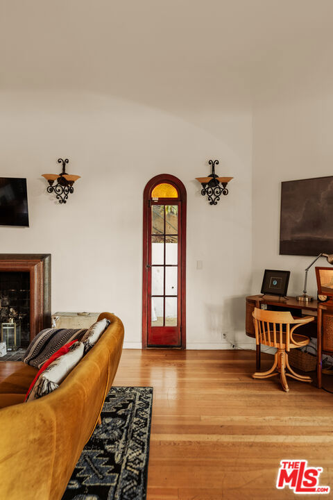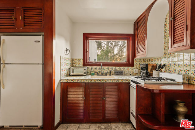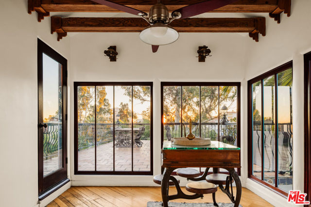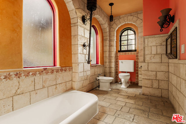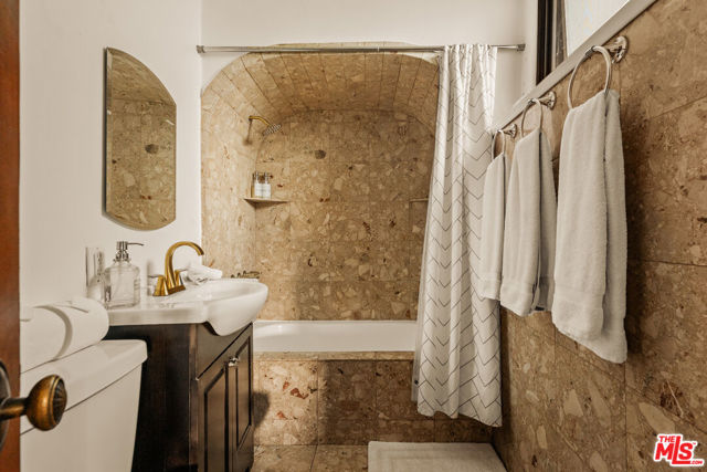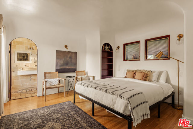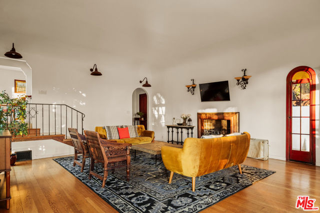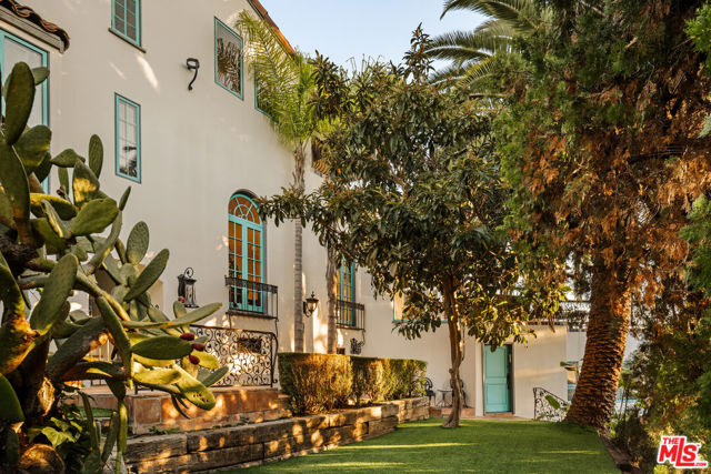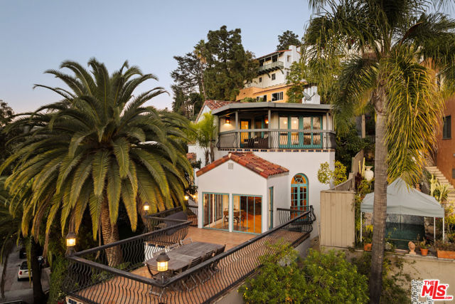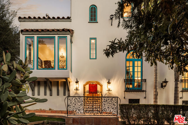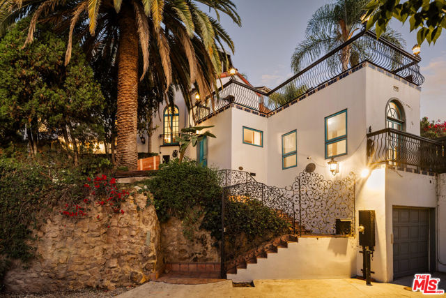 Perched in the heart of Whitley Heights, this beautifully preserved Spanish Revival estate blends timeless 1920s charm with modern sophistication. Enjoy sweeping canyon and city views from nearly every room - from sunrise to sunset. The light-filled main residence offers three bedrooms and three bathrooms, highlighted by a dramatic living room with soaring arched windows and a cozy sunroom featuring exposed wood-beam ceilings. French doors open to a spacious deck, perfect for outdoor dining and entertaining under the stars. Rich in character, the home showcases exquisite original details, including wrought ironwork, stained glass accents, colorful Spanish tiles, and handcrafted wood built-ins. The gourmet kitchen has been updated with high-end stainless steel appliances, including a Wolf range, and offers extensive cabinetry. A detached guest house mirrors the main home's vintage charm and provides flexible use - ideal as a guest suite or private office. The property also features multiple outdoor spaces for al fresco living, including manicured front and back yards, two patios, a view deck, and a balcony. Additional amenities include a one-car garage and on-site parking for two more vehicles. A private stairway offers direct access to Hollywood & Highland, the Hollywood Bowl, and other iconic attractions. A rare opportunity to experience a piece of Hollywood history, with unmatched views and exceptional indoor-outdoor living. Property can be offered furnished or unfurnished.