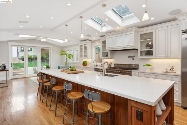 Set back on a picturesque, tree-lined street, this beautifully updated 1916 home blends timeless charm with modern living. This move-in ready home was thoughtfully expanded and enhanced in 2015 to meet contemporary with seamless indoor/outdoor flow and thoughtful design throughout. A welcoming front porch sets the tone—perfect for morning coffee or connecting with neighbors. Head inside and you'll discover an elegant living room with a gas fireplace flanked by built-in bookcases and abundant natural light. Across the hall, the formal dining room is ready to host your holiday gatherings and intimate dinners. The expanded chef’s kitchen is a standout, with a large island that easily seats six, high-end Viking appliances including a 6 burner gas range with griddle, custom cabinetry, a pantry, and built-in desk. An open seating area with French doors connects seamlessly to the backyard. The main level includes 3 bedrooms and 2 updated baths, including a spacious primary suite with vaulted ceiling and spa-like bath with marble tile and walk-in shower. Skylights brighten the interiors. A private top-floor room offers ideal space for your office or retreat. The lower level features a large family room ready to host movie nights, sleepovers and your next Super Bowl party. The bonus room with private entry is ideal for guests, au pair or workspace. A full bath, laundry, and a flexible use space for your home gym or hobbies completes the downstairs. Outdoor living shines with a level lawn, large patio with room for both lounging and al fresco dining, and beautifully landscaped gardens. A one-car garage and a carport are accessed from Hill Lane at the rear of the property with just a few steps to the backyard. The home is situated in an ideal central location, close to top rated schools, recreational facilities, Piedmont Park, off-leash dog trails, Mulberry's Market and public transit. 153 Arbor Drive is a truly special residence that checks every box — it's time to experience it for yourself.