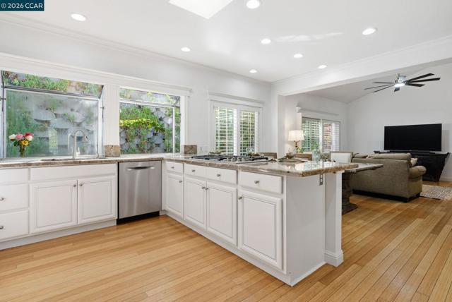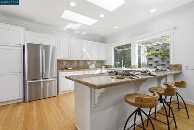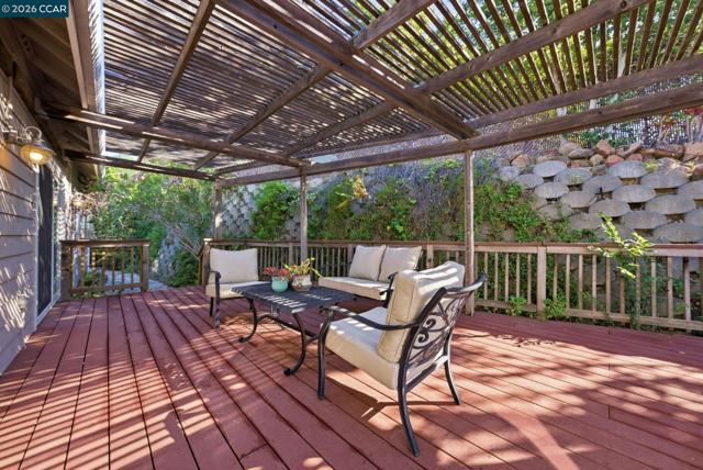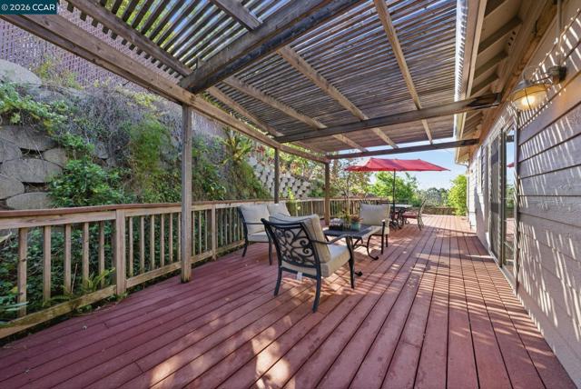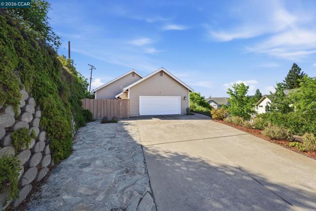 Rare and Stunning single story modern designer home at the end of this unique cul-de-sac with incredible views, vaulted ceilings, and tons of natural light. Tastefully updated and perched up with no neighboring homes at its same level. Located in the Valhalla Elementary School District (Buyer to verify). Welcome to 100 Sky Ranch Lane, a modern turnkey home with stone paved entertainers' yard, Huge 6 car driveway, 4 bedrooms, 2 beautifully remodeled baths, custom designed chef’s kitchen w/ tons of cabinet space, top-end stainless appliances, large granite breakfast / serving peninsula with counter seating, and attached dining room & vaulted family. The wide front entry foyer leads to a high vaulted ceiling living room with gas fireplace and floor to ceiling dual pane windows. The home has "an almost new" energy efficient central heat and AC system, jaw dropping vaulted ceiling master suite & bath with XL shower and soaking tub, gorgeous/private backyard w/ some of the most incredible views Pleasant Hill can offer, massive raised garden bed or future pool site. Such a unique property! Make this one yours! Views: Ridge