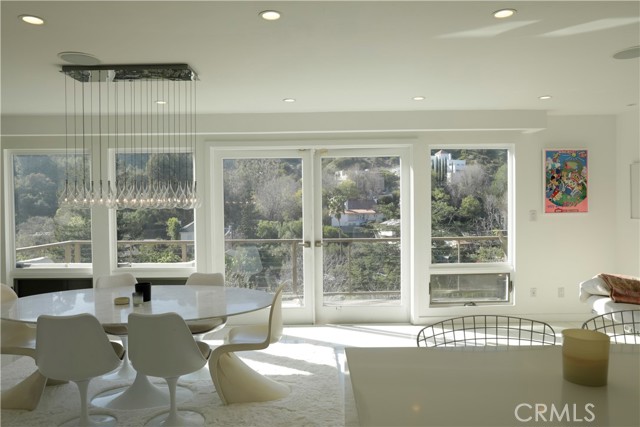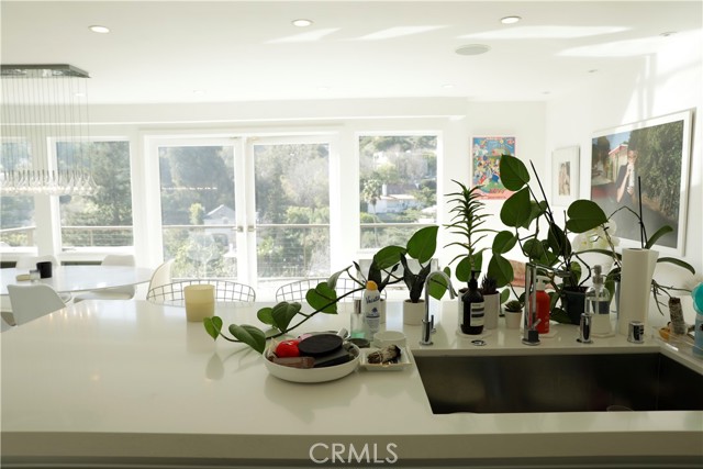 Perched above a serene, bucolic canyon with sweeping hillside views, This Gem in the hills is a striking blend of modern architecture and refined interior design. Behind its understated, austere facade lies a sophisticated, light-filled residence that evokes the feeling of a chic New York apartment reimagined for canyon living. Spanning three levels, the home offers dramatic living spaces with unobstructed vistas from nearly every room. The recently renovated main level showcases contemporary design at its finest, featuring Miele appliances, custom designer tile, and a stunning oversized center island that anchors the kitchen and doubles as a social hub. The open-concept living and dining areas flow seamlessly to an expansive entertainer’s deck, creating the perfect setting for indoor-outdoor living while overlooking the tranquil canyon below. With two bedrooms and two baths, this thoughtfully designed home delivers style, privacy, and a rare connection to nature—all just moments from the energy of Los Angeles.