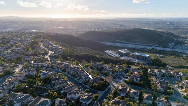 This turn-key home in Scripps Highlands offers a rare combination of privacy, views, and convenience. Situated on an expansive corner lot with no neighbors on three sides, this hilltop property enjoys westerly views, mountain vistas, and a consistent coastal breeze. The thoughtfully designed layout includes a bedroom and full bathroom on the main level, formal dining and living rooms, and an open kitchen connecting to the family room and backyard. Upstairs, the spacious primary bedroom and oversized office (optional fifth bedroom) offer elevated views across San Diego to the ocean. Two additional bedrooms with a Jack-and-Jill bathroom and a convenient laundry room complete the upper level. Tastefully updated throughout, this standout home features rich, hickory-toned luxury plank flooring, elegant millwork, and a custom staircase. The bright kitchen includes white cabinetry, stone counters, and Bosch and Dacor appliances. The wrap-around yard with mature trees and refined landscaping offers privacy but still feels open and expansive. A shaded outdoor living and dining area with fireplace and chimney connects to multiple turf areas and a vine-covered side patio. Just a 10-15 minute commute from Sorrento Valley, UTC, and top hospitals. And only 15 min from Del Mar beaches, in a community known for high-performing schools, this home offers an ideal balance of comfort, flexibility, and location. Additional features include paid solar with battery and EV charger, updated A/C, updated windows, whole-home and exterior surround sound, and a three-car garage.