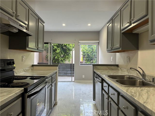 This updated and remodeled top-floor condo offers approximately 1,040 sq. ft. of modern living space in the absolute heart of Encino. Situated just a stone’s throw from Ventura Boulevard’s world-class shopping and dining, this 2-bedroom, 2-bathroom residence has been thoughtfully reimagined with brand-new smooth ceilings and recessed lighting throughout, creating a bright and airy atmosphere. The interior features a spacious kitchen with a bonus eating area, new countertops, and stainless steel appliances, including a new dishwasher and electric range. For year-round comfort, a newer air conditioning system, and the entire unit has been recently painted to provide a clean, contemporary feel. The expansive living room provides a versatile "bonus area" ideal for a formal dining room, home office, or den. Both bedrooms are generously sized; the primary suite includes a walk-in closet and private bathroom, while the second bedroom features large mirrored closets. Outside, you’ll find one of the largest balconies in the community, offering a peaceful, wooded view that ensures maximum privacy. This location is a commuter's dream, boasting a Walk Score of 82, meaning most errands can be accomplished on foot. It is also highly accessible via public transportation with a Transit Score of 52, and is considered a "Biker’s Paradise" with a Bike Score of 90 due to the flat terrain and excellent bike lanes. This unit comes complete with two tandem parking spaces and a dedicated storage unit. Rent includes water and trash utilities. The beautifully landscaped community offers a wealth of resort-style amenities, including a pool, spa, gym, billiard room, laundry facilities, and a barbecue area.