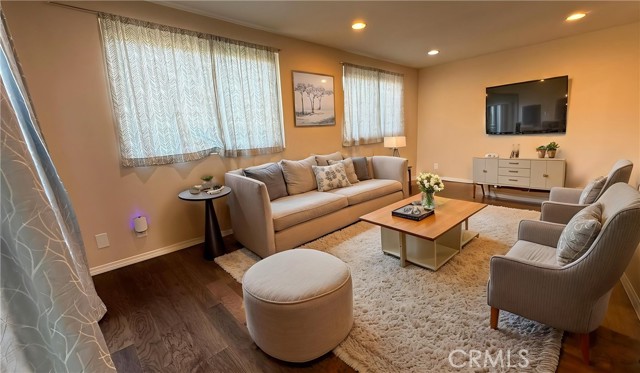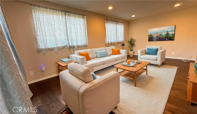 Completely remodeled house in Cerritos. Brand new designer kitchen with custom shaker cabinets. Updated bathrooms with new showers. Brand new custom master shower with designer frameless shower door. New real wood flooring. Brand new Heat Pump HVAC. Painted inside and out. Beautiful courtyard. Great Landscaping and Hardscaping. Close to freeways, mall. Check with school district to confirm enrollment. Indoor laundry area. Two car garage.