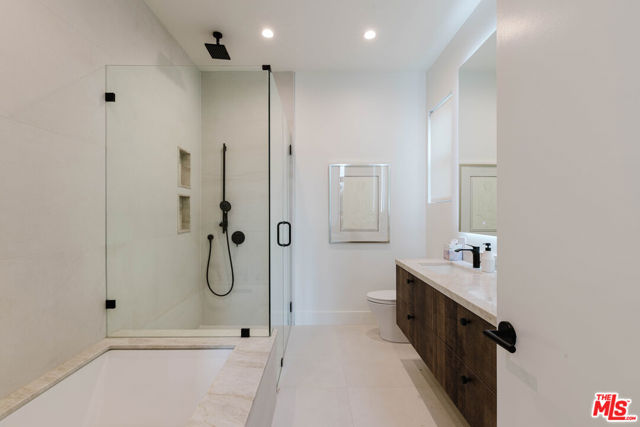 Tucked discreetly at the rear of a newly constructed, architecturally distinct compound, this exceptional four-bedroom, three-and-a-half-bath townhouse offers 2,500 square feet of refined, design-forward living in the heart of West Adams. Thoughtfully executed with a modern architectural sensibility, the home is defined by clean lines, curated materials, and elevated finishes that create a seamless balance of warmth and sophistication. The interiors are designed for both everyday comfort and elevated entertaining, featuring expansive living spaces, a dedicated walk-in laundry room, and abundant storage throughout. A chef-caliber kitchen is outfitted with top-of-the-line appliances and sleek, contemporary detailing, flowing effortlessly into the main living areas. Each bedroom is generously scaled, while the primary suite offers a tranquil retreat with a spa-like bath experience. Crowning the home is a private rooftop deck designed for hosting, complete with a built-in kitchenette and bar, and sweeping neighborhood views that create an ideal setting for sunset gatherings or intimate evenings under the city lights. Additional amenities include on-site parking with an integrated EV charging station, as well as the option to lease the home fully furnished with designer-selected pieces or delivered unfurnished to suit your lifestyle. The property consists of two detached townhouse residences, each with its own address, utilities, and meters, offering privacy and independence with only a shared driveway. This is a rare opportunity to experience contemporary luxury living in one of Los Angeles' most dynamic and culturally rich neighborhoods.