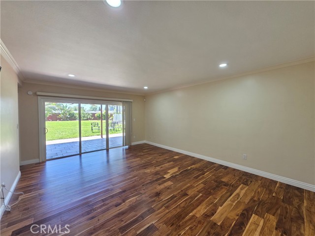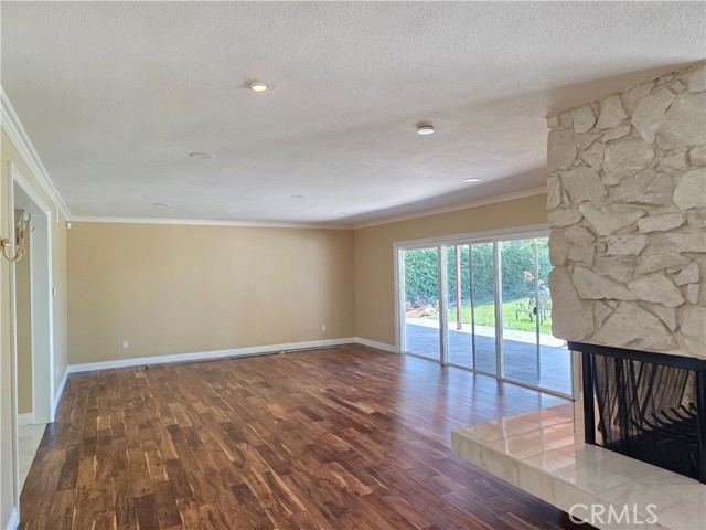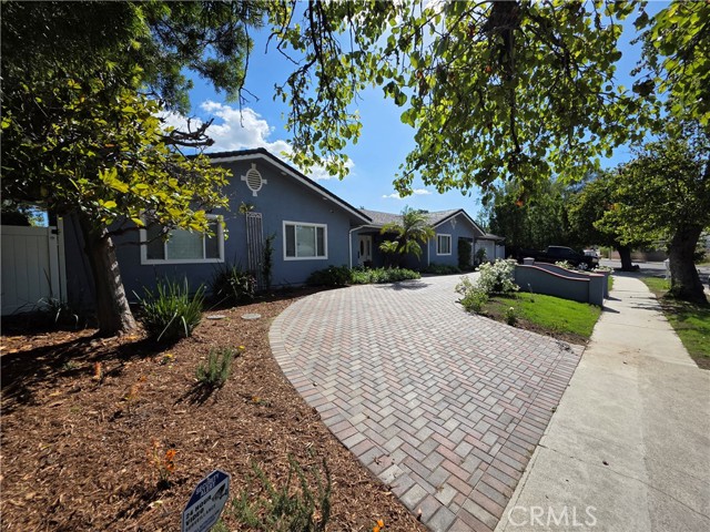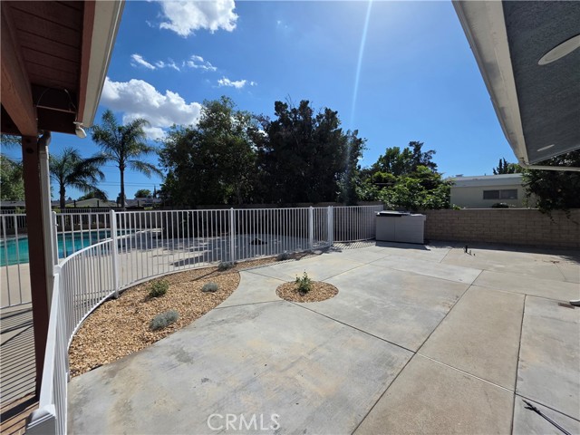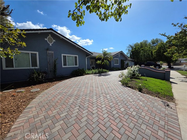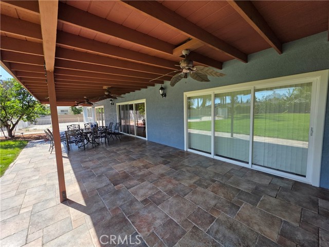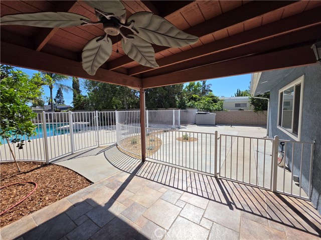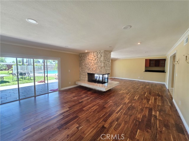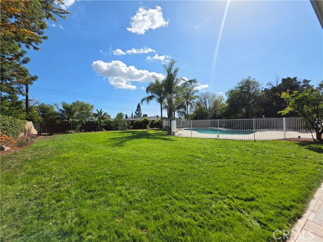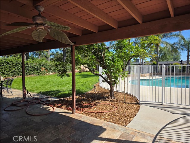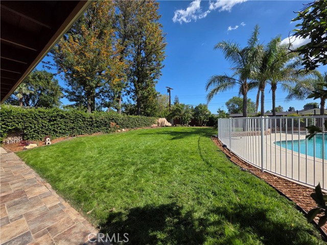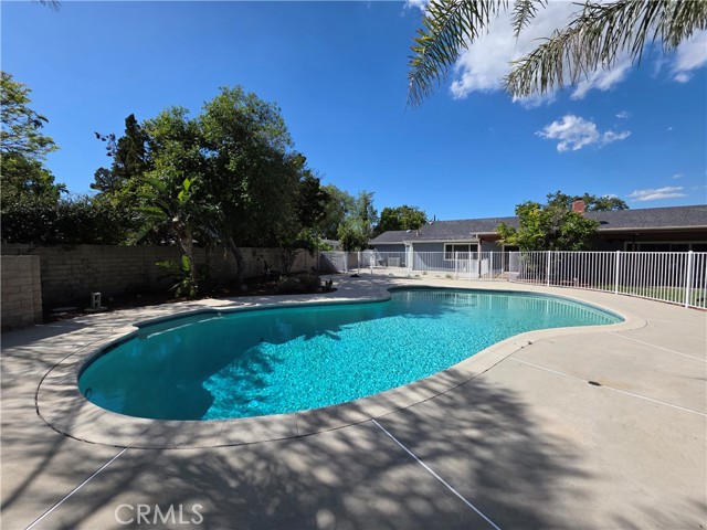 Beautifully upgraded single-story home offering 4 spacious bedrooms and an ideal layout for both comfortable living and entertaining. The home features a formal dining room, expansive living areas with rich wood flooring, and a stunning central fireplace that creates a warm focal point. The open kitchen is equipped with ample cabinetry, granite countertops, and a large island, seamlessly connecting to the main living spaces. Natural light pours in through multiple sliding glass doors, creating a bright and airy atmosphere throughout. Step outside to a truly exceptional backyard featuring an oversized covered patio—perfect for outdoor dining and gatherings—a massive grassy yard, and a very large resort-style pool, all surrounded by mature landscaping for privacy and beauty. Additional highlights include a dedicated laundry room, and a long driveway with ample parking. This is a rare opportunity to lease a home that combines space, functionality, and an incredible outdoor setting.