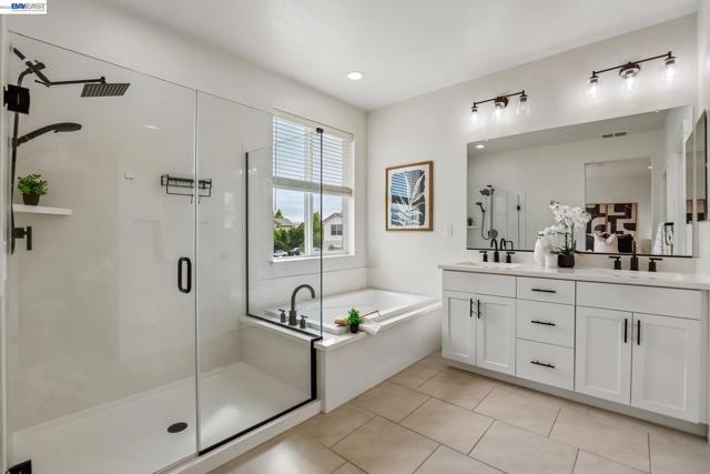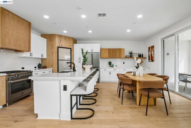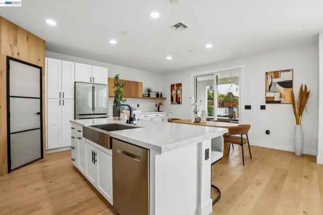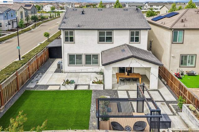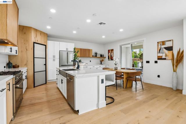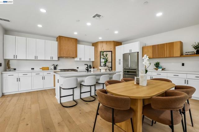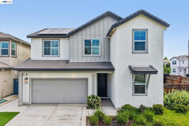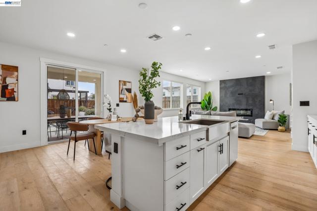 Welcome to a newer-built home that blends modern design with comfortable California living. This home offers the feel of new construction with a layout that’s open, bright, and easy to live in. From the moment you walk in, you’re greeted with warm wood flooring, natural light, and a seamless flow throughout the main living spaces. The kitchen is the heart of the home, featuring a large quartz island, sleek cabinetry, and plenty of space to cook, gather, and connect. It opens directly to the dining and living areas, creating a space that feels both functional and inviting. The living room is anchored by a modern fireplace and large windows, with sliding doors that lead to the backyard perfect for indoor-outdoor California living. Upstairs, a spacious loft offers flexibility for a second living area, office, or playroom. The primary suite provides a comfortable retreat with a bright ensuite bathroom, dual vanities, a soaking tub, and a walk-in shower. Additional bedrooms are well-sized, and the upstairs laundry room adds everyday convenience. Thoughtfully designed and move-in ready, this home welcomes you in and instantly feels like home.