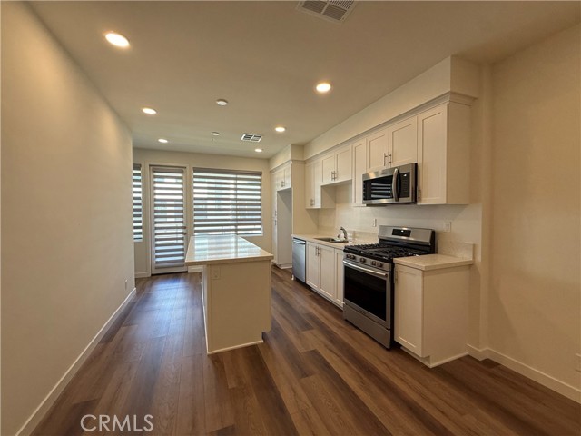 Newly built 3-bedroom, 3-bathroom townhome located in a gated community in Stanton. Property has solar and water is included with rent. The home features a three-story layout with an attached two-car tandem garage on the first floor. The second floor includes an open living area with a kitchen, private balcony, one bedroom, and a full bathroom. The third floor offers the primary bedroom with a private bathroom, along with a second bedroom that also has an attached private bathroom. There is in-unit laundry on the third floor with washer and dryer hookups available. Conveniently located near Rodeo 39 with easy access to the 22 Freeway.