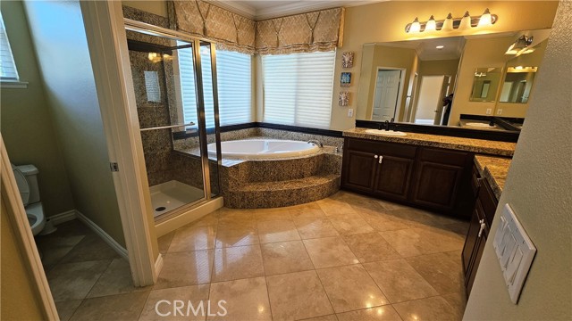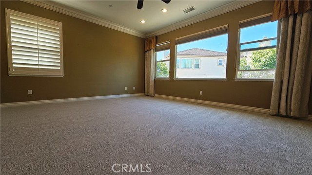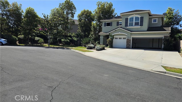Welcome to this pristine ROSE CREST home, ideally situated at the end of a quiet cul-de-sac on an expansive lot. Offering both privacy and charm, the serene side courtyard invites you to relax by the fire pit and sitting area, easily accessed through elegant French doors from the formal living room. The outdoor space continues seamlessly into the backyard with stone steps, creating the perfect setting for entertaining guests or enjoying peaceful evenings. Inside, this spacious 3,169 sq ft home features 4 bedrooms and 3 bathrooms, thoughtfully designed for both comfort and functionality. The gourmet kitchen showcases granite countertops, custom cabinetry, and opens to a warm and inviting family room with a cozy fireplace. A formal dining room with classic wood wainscoting adds timeless elegance. Upstairs, a versatile loft is ideal for a home office, complete with built-ins, internet wiring, and tranquil views of surrounding trees and yards. The layout includes a convenient downstairs bedroom—perfect for guests or multi-generational living. A large bonus room upstairs provides additional flexible space for recreation or relaxation. The private primary suite offers a true retreat, featuring a spacious walk-in closet with custom organizers. Additional highlights include an indoor laundry room, hardwood flooring, new carpet, crown molding, custom window coverings, beveled windows, granite and travertine finishes, and epoxy-coated garage floors in the 3-car garage. Energy-efficient upgrades such as a solar system and water softener add value and convenience to this exceptional home.