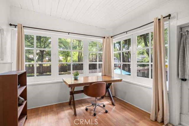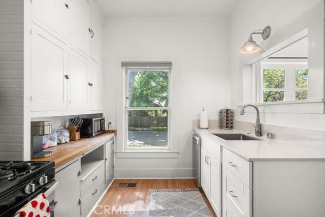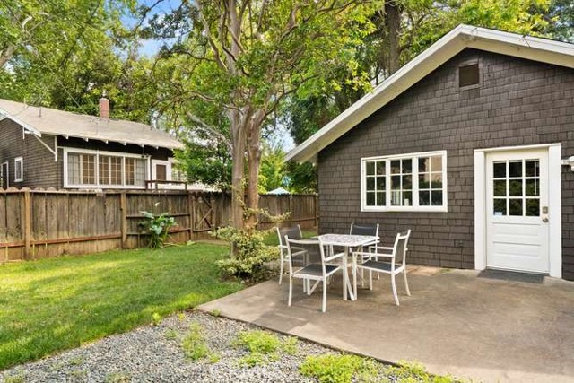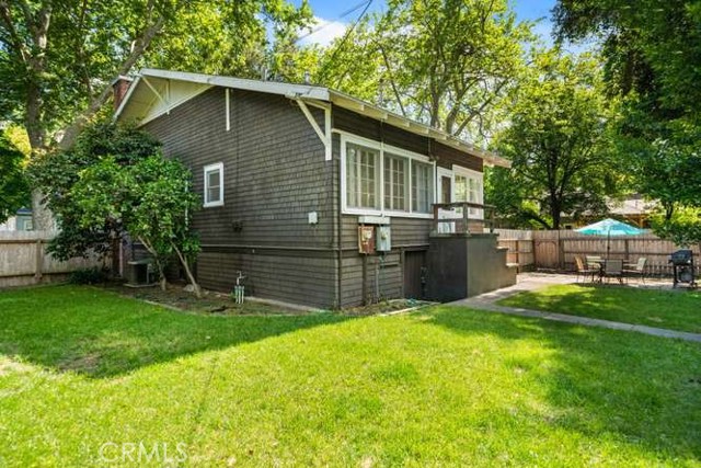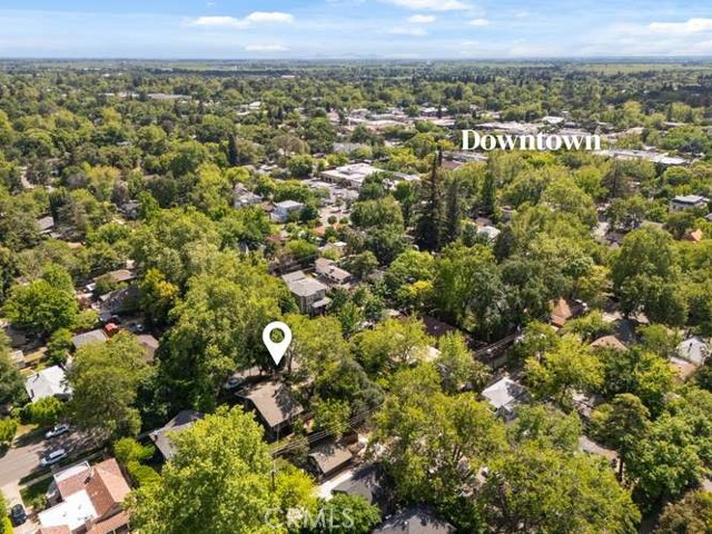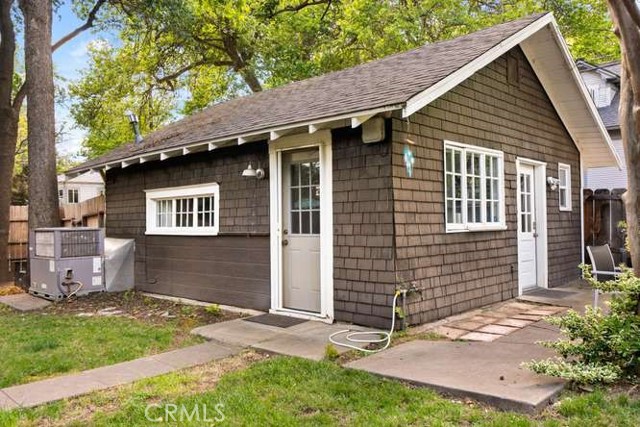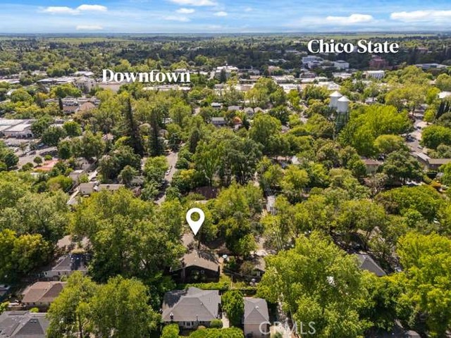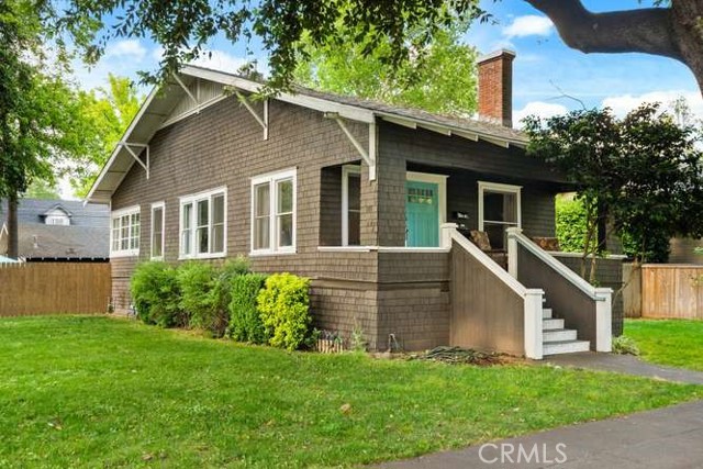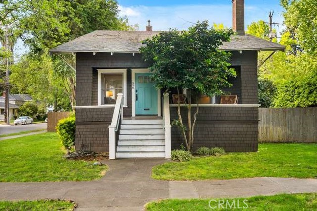 Located in Chico’s highly sought-after Golden Triangle, this rare two-homes-on-one-lot property blends timeless charm with exceptional versatility—all just a short stroll to Bidwell Park, downtown Chico, the beloved Chico Certified Farmers Market, and California State University, Chico. Tucked along a quiet, tree-lined street, the setting offers shade, character, and an unmistakable sense of place. The main home welcomes you with an inviting front porch—perfect for morning coffee or relaxing evenings—alongside classic architectural details like original oak hardwood floors, a cozy brick fireplace, and beautiful built-in shelving. A light-filled sunroom creates the ideal space to unwind or work from home, while the updated kitchen features stainless steel appliances, a gas range, and modern functionality that complements the home’s historic appeal. The Jack-and-Jill bathroom showcases a charming clawfoot tub, and practical upgrades like updated electrical and a full basement add peace of mind and extra storage. Step outside to a private, fenced backyard—ideal for entertaining or enjoying the peaceful surroundings. Tucked behind the main residence, the fully permitted carriage house offers a studio layout with its own private entrance and yard. Bright, cozy, and thoughtfully designed, it includes a full kitchen and inviting living space. Currently operating as a successful vacation rental, it presents an excellent opportunity for supplemental income, guest accommodations, or a private home office. Whether you're looking for a primary residence with income potential, a multi-generational setup, or an investment in one of Chico’s most desirable neighborhoods, this unique property delivers flexibility, charm, and location in one exceptional package.