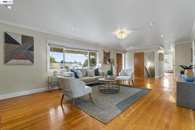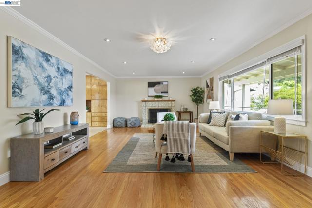Exceptional Upper Valley residence offering over 2,100 sq. ft. of light-filled living space in one of Castro Valley’s most sought-after neighborhoods. This beautifully appointed 4-bedroom, 2.5-bath home features a bright, wood burning fireplace in the family room, open floor plan with all bedrooms on the main level and hardwood flooring throughout. Designed for both functional living and entertaining, the open-concept kitchen showcases slab granite countertops, solid oak cabinetry, and seamless flow into expansive living areas. The east-facing orientation fills the home with natural light, creating a warm, inviting ambiance. A versatile downstairs bonus room provides ideal space for a secondary living area, home office, or media room. Additional highlights include a 2-car garage, spacious basement storage, extended driveway, and rare side yard parking for multiple vehicles. Ideally located near historic downtown Castro Valley, with easy access to shops, dining, Lake Chabot, Eden Medical Center, and Hwy 580. Located within highly rated Castro Valley High and Proctor Elementary Schools, both within walking distance. This home will definitely win your heart!