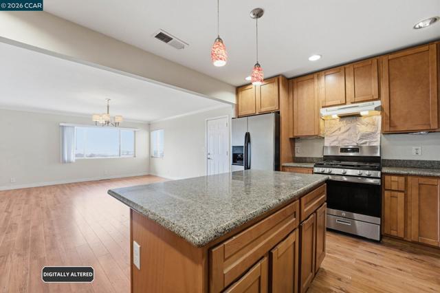Nestled in the sought-after Oakland Hills, this stunning 3-bedroom, 3-bathroom home offers 2,400 sq. ft. of stylish living with breathtaking city and bay views. The bright, airy living room with a cozy fireplace opens to a sprawling deck, perfect for soaking up the scenery and enjoying outdoor living. The upgraded kitchen boasts granite countertops, stainless steel appliances, and a formal dining area ideal for hosting. A versatile main-level bonus room, paired with a full bath, offers endless possibilities—home office, gym, or guest suite. OH Sat 4/25 at 1-4PM Upstairs, the primary suite is a luxurious retreat with three closets (two walk-ins!), a spa-like ensuite, and sliding doors framing unforgettable views. Another spacious suite with its own balcony and a third bedroom round out the upper level. Complete with a two-car garage and a generous lot, this home is a perfect blend of comfort, style, and those mesmerizing views—a true Oakland Hills lifestyle.