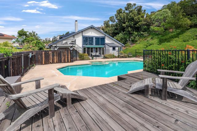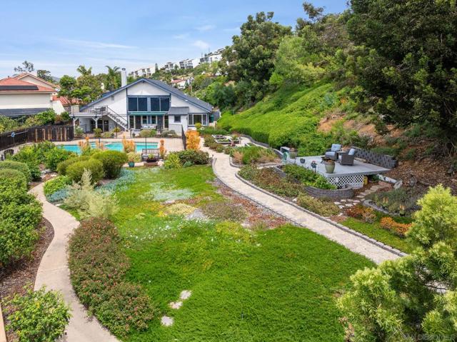 Truly unique Del Cerro opportunity tucked away at the end of a quiet cul-de-sac on an expansive 0.79-acre lot. A long, private driveway leads to this secluded home, complete with a charming pathway to the front door, creating a peaceful and tucked-away setting. The living room features soaring ceilings and a gas fireplace, overlooking a serene and tranquil backyard. A spacious kitchen opens seamlessly to the family room, while the formal dining room offers French doors that lead to the patio—perfect for indoor-outdoor living. The main level includes four bedrooms, with a private primary suite located on the second floor. The oversized backyard provides ample space for entertaining, relaxing, and play, while multiple decks capture beautiful westerly views. With endless possibilities, this property is ready to be customized to fit your vision. Located within the Hearst Elementary, Lewis Middle, and Patrick Henry High School boundaries. A great value and a must-see!