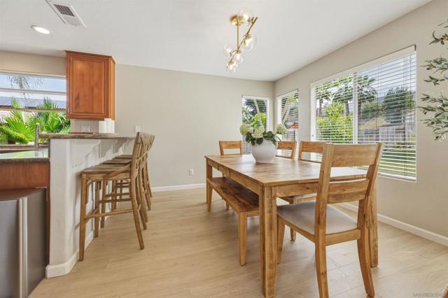 Welcome home to this beautiful Rancho Del Oro Villages II property, surrounded by walking trails and a, well-kept neighborhood. This home features one of the largest backyards in the community, complete with a covered patio and plenty of space for family, pets, and outdoor entertaining. New flooring has been added on the first floor and stairwell. The fully remodeled downstairs bathroom adds fresh style and convenience for guests. The kitchen has been tastefully maintained with granite counters, newer cabinets, stainless steel appliances, and a newer gas stove and microwave. Enjoy a breakfast bar and a spacious dining area that flows into the living room, which offers two-story ceilings, plantation shutters, wood flooring, and a cozy fireplace—bright, open, and airy throughout. Upstairs, the primary suite offers a peek view, room for large furniture, a walk-in closet, dual sinks, and a new walk-in tile shower. A Jack-and-Jill bathroom connects the two additional bedrooms.