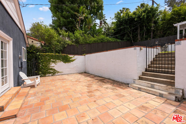 Nestled in the Hollywood Hills behind a private gated entry, this charming retreat offers the perfect blend of privacy and convenience, just moments from the area's best dining, shopping, and entertainment. Enjoy easy access to the vibrant Sunset Strip, iconic nightlife, scenic hiking trails, and the studios, all while coming home to a peaceful hillside sanctuary. Inside, the home features a beautifully renovated vintage-style kitchen with Thermador stainless steel appliances, double ovens, a spacious breakfast nook, bar seating, and classic Spanish paver flooring. The light-filled living and dining areas showcase rich hardwood floors and an open layout ideal for relaxing or entertaining. The spacious primary suite includes cedar-lined closets and a luxurious bath with a soaking tub, while the secondary bath has been tastefully updated with a mosaic tile shower. The terraced backyard features lush landscaping, a fire pit, pond and waterfall, and tranquil city views, creating a private outdoor escape just minutes from the best of Hollywood and West Hollywood.