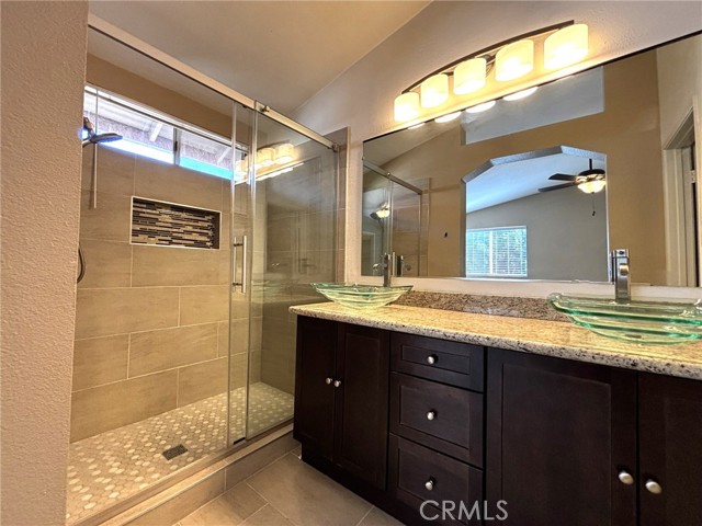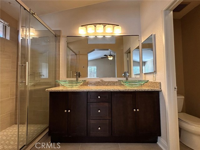 This Corona home is located in a cul-de-sac, featuring three bedrooms and two and a half bathrooms. The kitchen offers granite counters, cherry cabinets, stainless appliances, and a breakfast bar. Enjoy formal living and dining rooms with vaulted ceilings, plus a family room with fireplace and access to a covered patio. The primary suite features double doors, a walk-in closet, a modern bathroom with dual glass sinks, granite counters, and a walk-in shower. The 2 car garage has built in storage shelving and a small workbench. This property is conveniently situated near Norco Village Shopping Center and Stagecoach Park, with easy access to the 15 and 91 freeways just minutes away. Gardening service is included.