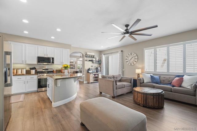 Welcome to this beautifully maintained 3-bedroom, 2.5-bath home in the heart of Otay Ranch. The open layout features LVP flooring throughout and a spacious kitchen with stainless steel appliances and a large island that flows seamlessly into the living area. A downstairs office area adds flexibility for working from home. Upstairs, a spacious loft offers the perfect second living area, along with a large primary suite, two additional bedrooms, and convenient upstairs laundry. Step outside to a low-maintenance backyard with turf and patio space, ideal for outdoor dining or relaxing evenings. Located just steps from the neighborhood park and pool and within walking distance to Otay Ranch Town Center, this move-in ready home also includes smart home features for added comfort and peace of mind—making it a place you’ll love coming home to.