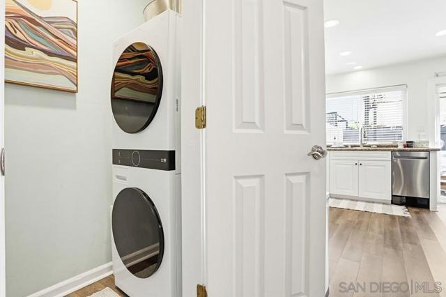 MINUTES west to the beach & Camp Pendelton and east to Cal State San Marcos! Turnkey 2-bedroom, 1.5-bath townhome featuring a large back patio for gardening/entertaining. Upgrades include shaker cabinets, gas stovetop, newer appliances, high-end in-unit washer and dryer, dual-pane vinyl windows, plank flooring, new paint, updated full bath, and a one-car detached garage near the unit plus one assigned parking space next to garages. The neighborhood offers a great mix of amenities, recreational opportunities, and highly desirable Carlsbad schools. Low HOA covers Exterior (Landscaping), Exterior Bldg Maintenance, Hot Water, Sewer, Trash Pickup, Water, Pest Control. Complex is pet friendly.