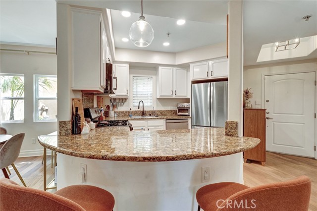 Beautifully updated 3 bedroom, 2 bathroom condo in Van Nuys offering 1,420 square feet of thoughtfully designed living space where comfort, functionality, and style come together seamlessly. From the moment you arrive, the entry creates a sense of separation and privacy rarely found in condo living, setting the tone for what’s inside. As you step through the door, you’re welcomed by wide-plank flooring, clean lines, and a natural flow that immediately feels open, bright, and inviting. The main living area centers around a cozy fireplace and opens effortlessly to a private balcony through sliding glass doors, allowing natural light to pour in while extending your living space outdoors—ideal for relaxing mornings or unwinding at the end of the day. The kitchen is both functional and well-positioned, featuring granite countertops, stainless steel appliances, and counter bar seating that connects naturally to the dining and living areas. Whether you’re hosting or simply enjoying everyday life, the layout keeps everything within reach while maintaining an open, connected feel. Recent updates include new flooring, fresh interior paint, and an updated primary bathroom vanity, giving the home a clean, modern, move-in ready feel without the need for immediate upgrades. The floor plan offers flexibility with three well-sized bedrooms that can easily adapt to your needs—whether that’s a home office, guest room, or additional living space. The primary suite provides a comfortable retreat, while in-unit washer and dryer hookups add everyday convenience. Beyond the home itself, the setting adds another layer of appeal. The building features a peaceful, well-maintained environment, and opportunities to own here are rare—making this a unique chance to secure a home in a community where properties are not often available. Located in the heart of Van Nuys, you’re positioned with convenient access to shopping, dining, and major freeways, creating an ideal balance between comfort at home and connectivity to everything Los Angeles has to offer. This is more than just a condo—it’s a space that feels easy to live in from the moment you walk through the door.