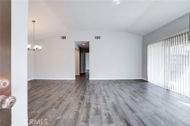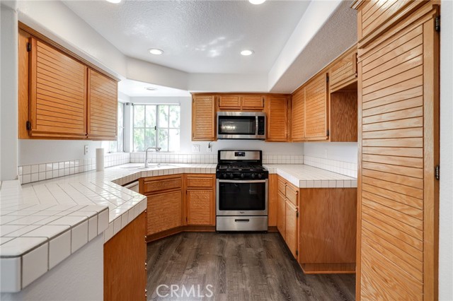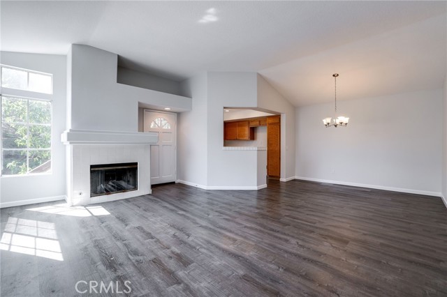 Charming end-unit home in Anaheim featuring 2 bedrooms and 2 bathrooms. Freshly painted interiors and new laminate flooring create a bright, updated feel, complemented by recessed lighting and high vaulted ceilings. A living area with a fireplace opens to a balcony, and the kitchen offers tile counters. Washer and dryer hookups are provided for convenience. The two-car attached garage adds secure parking and storage, and the unit’s location ensures no one lives above or below. Ideal for those seeking a low-maintenance, move-in ready residence.