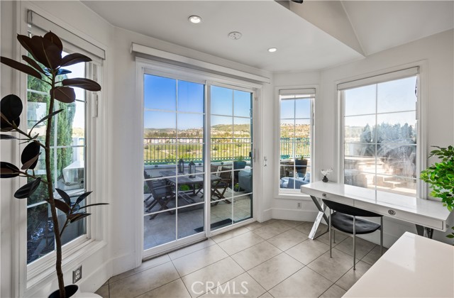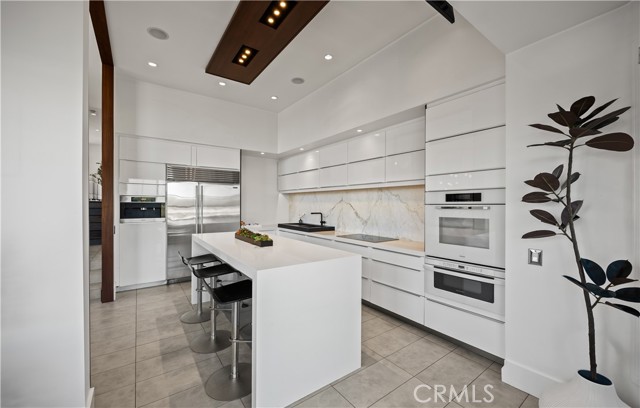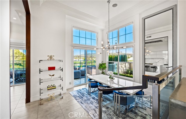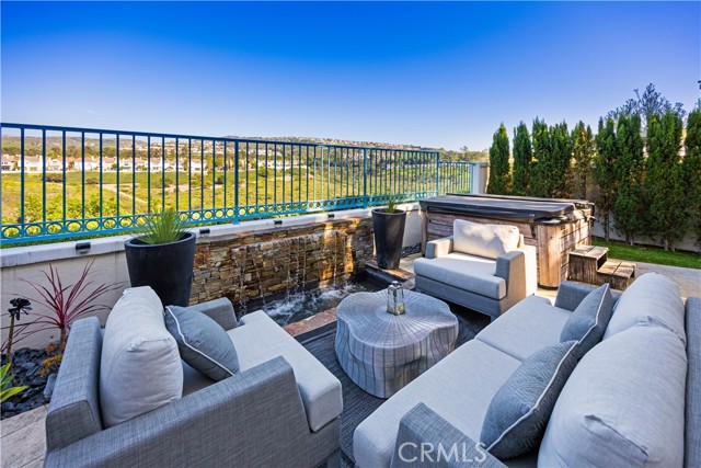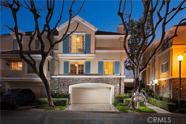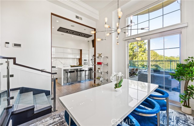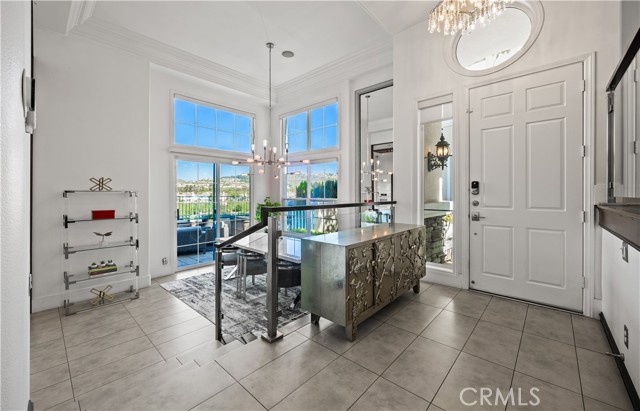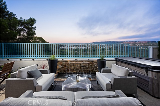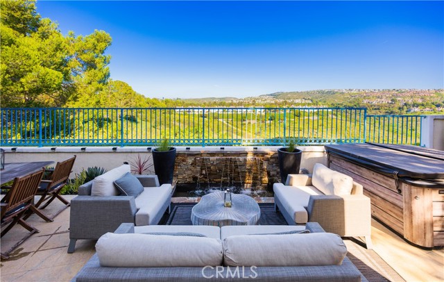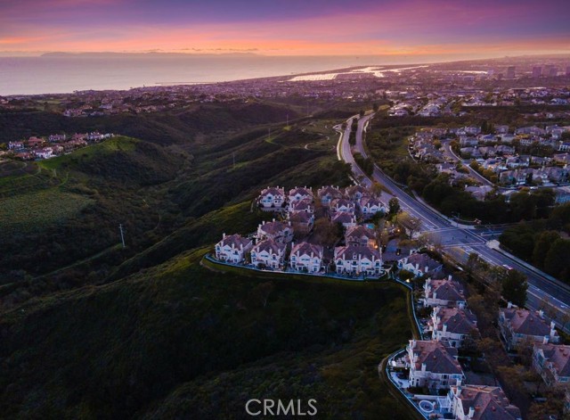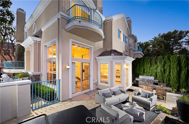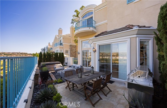 Located within the beautiful French-inspired gated community of Newport Ridge Vistas, this sophisticated fully furnished townhome has been completely reimagined, offering a refined luxury lifestyle with elevated finishes including Italian Porcelanosa stone and tile in all bathrooms, custom light fixtures, architectural lighting, and a Sonos sound system inside and out. The home is sun-drenched, light and airy, with soaring ceilings creating an immediate sense of openness upon entry. The exceptionally large, double-sized kitchen—a significant upgrade over the original half, L-shaped kitchens in the community—is a gourmet showpiece featuring 16-foot ceilings and tranquil canyon views. Designed for everyday living and entertaining, it offers high-gloss flat-front cabinetry, white marble countertops and backsplash, a built-in Miele espresso machine, Miele wall oven, Fisher & Paykel dishwashers, Sub-Zero refrigerator, and a Miele induction cooktop. The kitchen and dining area flow seamlessly to a private rear-yard oasis framed by mature hedge trees for enhanced privacy, complete with a water feature, gas BBQ, and hot tub overlooking the canyon. Custom Bali privacy blinds in the kitchen and dining area allow natural light while maintaining privacy. A separate main-level office, divided by custom sliding glass doors, provides an ideal work-from-home setup. Upstairs, the primary retreat features a gas fireplace, private balcony with canyon views, dual closets, and Hunter Douglas custom motorized blinds with sheer and blackout options. The spa-like primary bath includes marble wall tile, soaking tub, walk-in shower, and dual-sink cabinetry with seated vanity. Two additional bedrooms and a full bath complete the floor plan. The home is further enhanced by a thoughtfully designed laundry center in the garage with premium washer and dryer, adjoining cabinetry, utility sink, and extensive custom built-in garage storage—an upgrade from the original layout where laundry was positioned near the garage entry. Security cameras and numerous designer upgrades complete this exceptional offering. Newport Ridge Vistas offers a large greenbelt, heated pool and spa, and proximity to shopping, dining, Newport Coast Elementary, and all Newport Ridge amenities including pools, spas, sport courts, parks, and playgrounds.