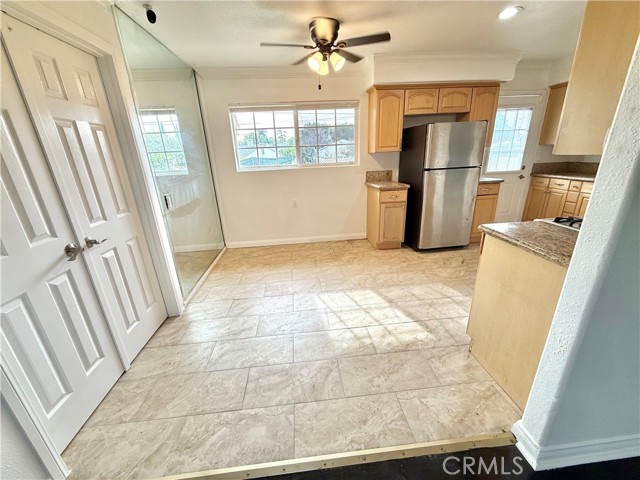 Freshly Updated North Pomona Home in a great neighborhood. Seriously, drive by. and you will even see the RV parking, Mountain Views & Alley Access. Welcome to this refreshed North Pomona home offering versatility and beautiful mountain and valley views. The property has undergone a cosmetic refresh that enhances its bright, clean, move-in-ready feel. Inside, the home now features refinished original hardwood floors throughout the main living areas and 3 of the bedrooms (the fourth has vinyl plank flooring). The entire interior/exterior has been freshly painted for you to move right in. The spacious chef’s kitchen offers granite countertops, a walk-in pantry, and flows seamlessly into the living and dining areas—ideal for everyday living and entertaining. Bathrooms have been remodeled, including a private primary suite with its own bathroom and shower. Additional highlights include dual-pane windows for energy efficiency, custom hallway and bathroom storage, crown molding, a large walk-in closet, and a dedicated laundry room. The home also features a permitted roof installed in 2023. Outside, the exterior has been freshly repainted, complementing recent light repairs and updates. The detached garage has been upgraded with new drywall, recessed lighting, fresh paint, and includes a convenient toilet—perfect for a workshop, entertaining overflow, or future conversion. The garage is securely accessed via a wrought-iron sliding gate from the alley, with RV parking available. Enjoy outdoor space with room for entertaining, gardening, or adding a pool, all while taking in scenic mountain and valley views from both the front and backyard. Located in a desirable North Pomona neighborhood, this home offers a rare combination of fresh updates, functional space.