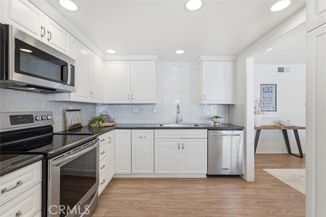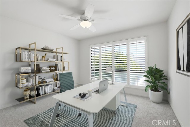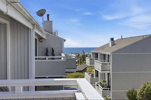 Welcome to 18 Land Fall Court in the highly sought after Newport Crest community of Newport Beach. Ideally situated within one of the community’s most premier courtyards, this exceptional end unit residence features a partial ocean view and an expansive private deck overlooking the lush greenbelt, offering both privacy and picturesque surroundings. Spanning approximately 1,778 square feet, this home showcases one of Newport Crest’s most desirable floorplans, including a main floor bedroom and full bathroom, ideal for guests or flexible living. The residence features three bedrooms plus a dedicated office and three remodeled bathrooms, thoughtfully updated for modern comfort and style. Wood-like laminate flooring enhances the main level, complemented by new carpet, fresh interior paint, and a move-in ready feel throughout. The kitchen is appointed with stainless steel appliances, a full height tile backsplash and a pass-through to the living room, creating a seamless flow for everyday living and entertaining. The primary suite offers vaulted ceiling, a spacious walk-in closet, abundant natural light through oversized sliding glass doors leading to a private balcony, and a beautifully updated en suite bathroom with a dual vanity and a marble shower. A versatile loft with functional windows adds additional flexibility to the primary suite, perfect for storage or a cozy reading nook. Newport Crest residents enjoy resort-style HOA amenities including a pool, spa, clubhouse, and tennis courts, all within a prime bluff-top setting overlooking Sunset Ridge Park. Just moments from world-class beaches, dining, and shopping, with convenient access to freeways and John Wayne Airport, this is an exceptional opportunity to experience the best of coastal Orange County living.