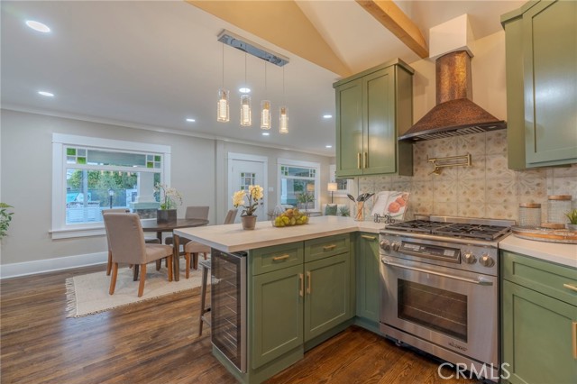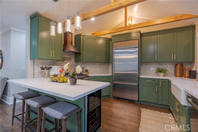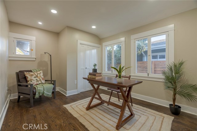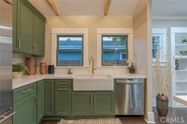 Welcome to this beautifully renovated Historic Craftsman Bungalow, offering the perfect blend of classic Los Angeles charm and modern comfort. On a quiet street tucked behind automatic security gates, this private property provides both Old Hollywood character and convenience in a prime location. Step onto the inviting river rock porch and into a warm, open living space ideal for everyday living and easy entertaining. The updated kitchen is both stylish and functional, featuring a stainless steel Wolf stove, GE Monogram refrigerator, built-in wine fridge, farmhouse sink, and a cozy breakfast bar. The home offers four bedrooms and three-and-a-half bathrooms, including a flexible primary suite that can be adapted to suit your needs. Recent upgrades include new cathedral celings, electrical panel/circuits , plumbing, air conditioning, roof, restored windows, and hardwood flooring throughout—giving you peace of mind and move-in-ready ease. Additional highlights include secure on-site parking and two 220v outlets for convenient electric vehicle charging. A smart sprinkler system helps maintain the grounds, while attic access provides valuable extra storage. Located near De Longpre Park, Sunset Boulevard, Santa Monica Boulevard, and the Hollywood & Highland Metro station, you’ll enjoy easy access to everything Hollywood has to offer. A timeless Craftsman with thoughtful updates—comfortable, charming, and ready to call home. Furnishings available upon request.
