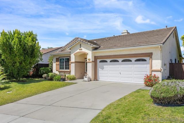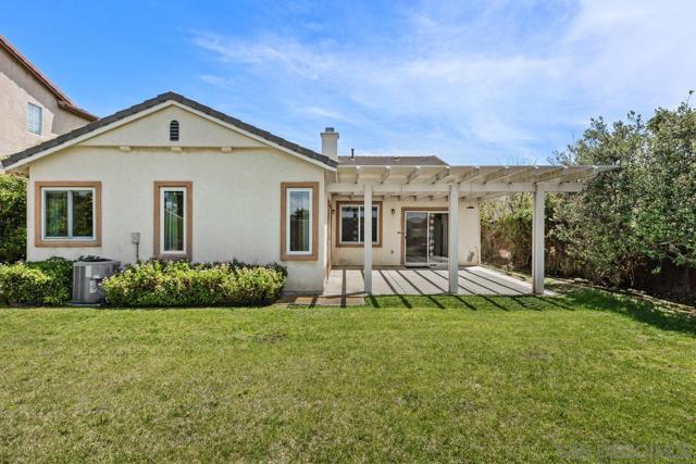 SINGLE STORY on a cul-de-sac in Sonoma Hills with a spacious, usable backyard and great indoor-outdoor flow. This 3 bedroom, 2 bathroom home features high ceilings, abundant natural light, and an open layout connecting the living spaces to the kitchen and backyard. The kitchen offers ample cabinetry, a center island, and opens to the family room—ideal for everyday living. The primary suite includes direct backyard access, creating a private retreat, while secondary bedrooms are well-sized and versatile. The backyard features a covered pergola patio and plenty of space to relax, entertain, or customize. Located in a quiet, established neighborhood with Bonsall West Elementary within the community, making it a convenient, walkable option for many. Camp Pendleton is just down the street, and the home offers easy access to parks, shopping, and major routes.