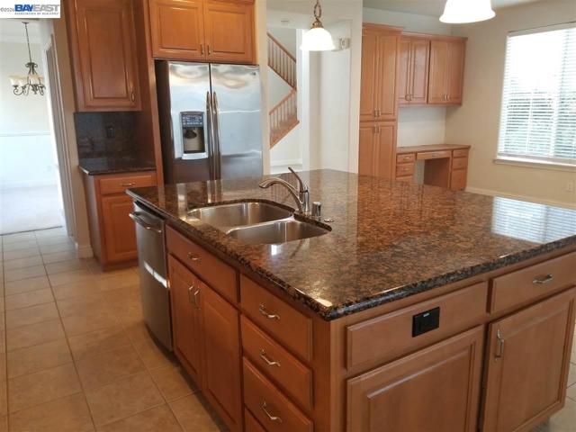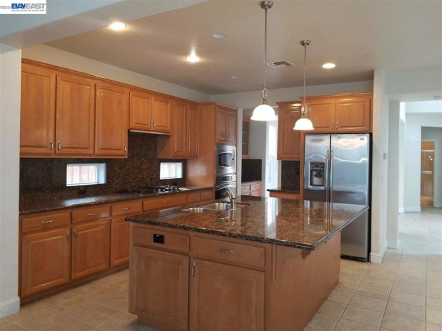 Splendid 4BR home in Mountain House, CA. This home offers 3,064 sqft. of living space with 4 bedrooms, bonus loft, 3 bathrooms and a two-car garage. The gourmet kitchen comes fully equipped with granite counter tops, double sink, island and all stainless steel appliances: including gas range/oven, refrigerator, microwave and dishwasher. Flooring consists of tile and carpet throughout. The master suite offers a spacious bedroom, walk in closet, bathroom with dual vanities, oversized soaking tub and roomy shower! Gardening services included. Additional amenities: washer and dryer, wall cooling unit, fireplace and a well-maintained rear yard with patio. Tenant is responsible for all utilities. Easy commute access to I-205 & I-580. This is the perfect place to call home! INFORMATION IS DEEMED RELIABLE, BUT IS NOT GUARANTEED!