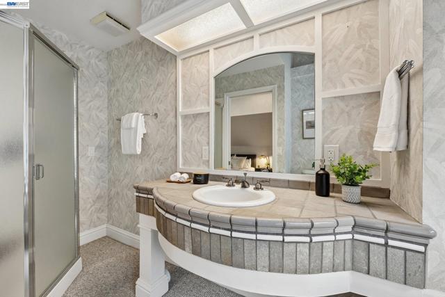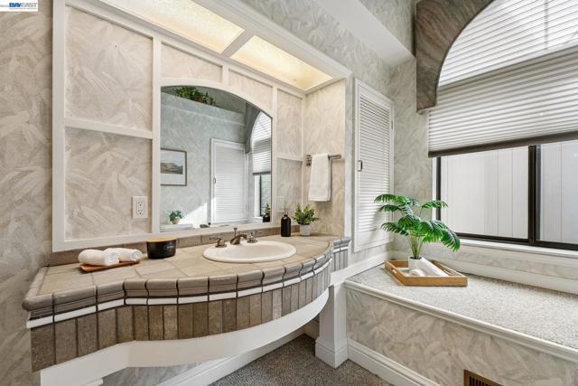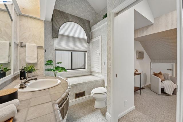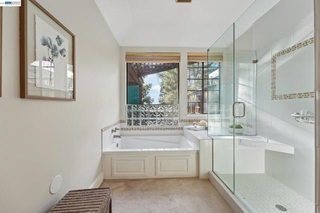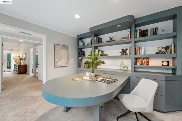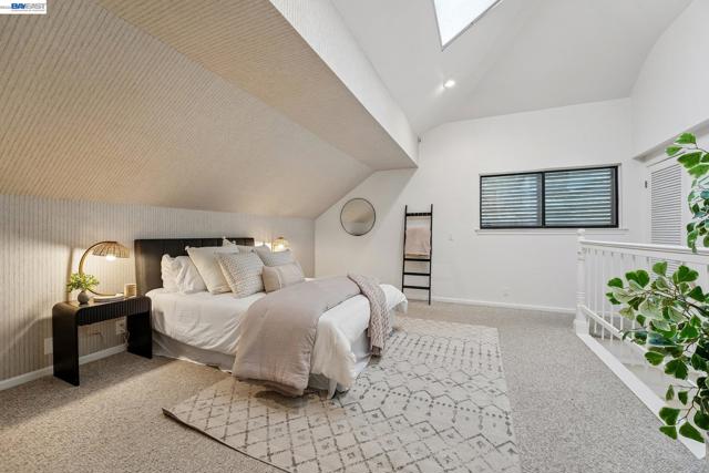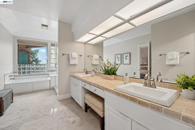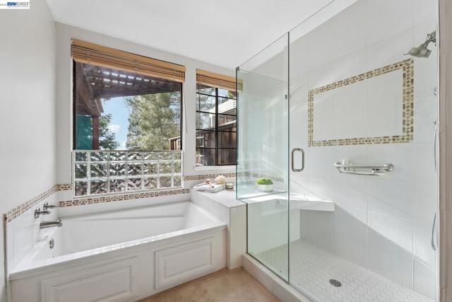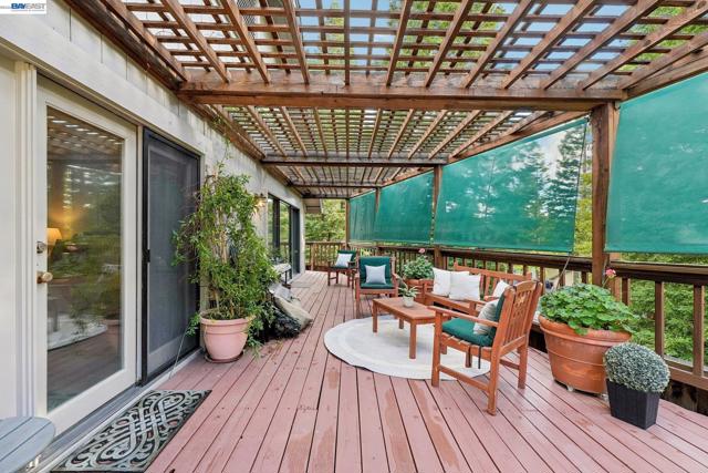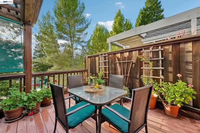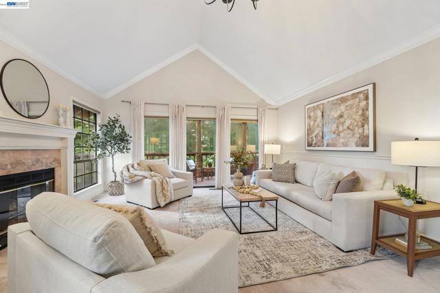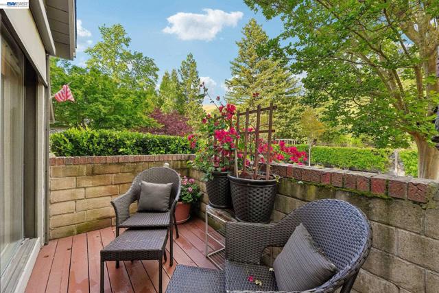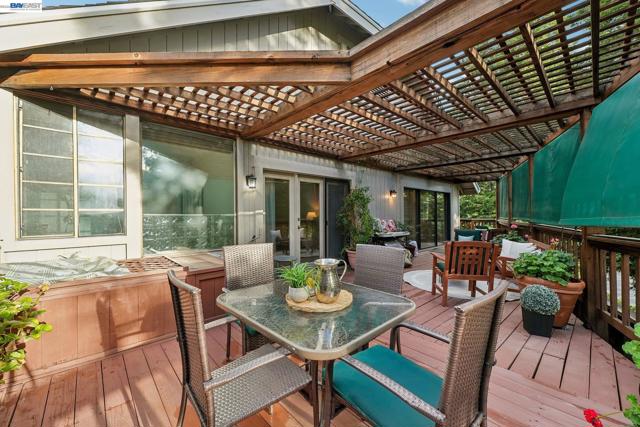 Tucked within the secure, prestigious gates of the Blackhawk Tennis Villas, this sophisticated residence offers an unparalleled blend of modern comfort and architectural elegance. Freshly updated with new paint throughout, the home greets you with a lush, private front garden and a striking interior atrium that serves as a sun-drenched centerpiece. Inside, the sense of space is immediately amplified by soaring ceilings that create an airy, grand atmosphere, while a cozy fireplace provides a warm focal point for the main living area. The layout features three bedrooms, including one currently utilized as a den with built-in bookcases and desk and a secluded upper-level suite complete with its own full bathroom - perfect for guests. The primary bathroom has been beautifully updated to include both a deep soaking tub and a separate shower, with access to your private deck from the bedroom. Designed for both relaxation and the hobbyist, the property boasts a two-car garage plus a dedicated golf cart garage, perfect for a lifestyle of ease. Step outside to the back deck to enjoy peaceful views overlooking the professional tennis courts, or take advantage of the premier community amenities; with membership, residents can enjoy exclusive access to Blackhawk Country Club clubhouses, tennis courts, pools and more. This move-in-ready gem perfectly captures the essence of luxury villa living with dramatic, light-filled flair and modern refinements.