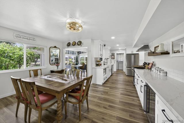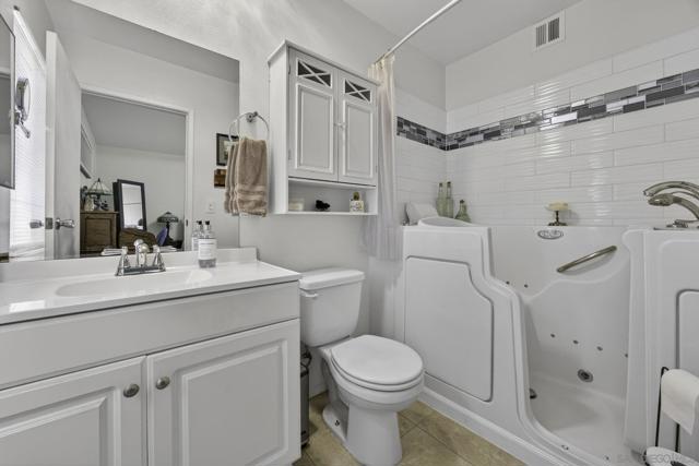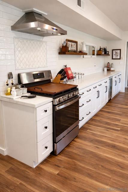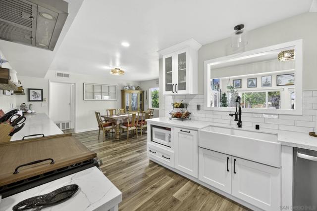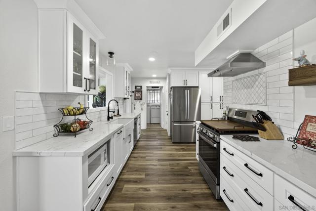 Beautifully remodeled single-story home in one of the most desirable 55+ communities. The expansive kitchen is a true showstopper, featuring white shaker cabinetry, over 23 feet of stunning quartz countertops, 5-burner gas range, brand-new GE stainless steel appliances, making it one of the largest kitchens in the community. A designer subway tile backsplash with elegant marble inlay adds a sophisticated finishing touch, tying the space together with both style and function. Enjoy stylish luxury vinyl plank flooring throughout and a thoughtfully updated interior. The large, finished sunroom offers flexible space and can easily be converted into an optional third bedroom, home office, or hobby room. Situated on a premium cul-de-sac lot with no rear neighbors, this home offers added privacy and peaceful views—one of the most sought after locations in the neighborhood. Energy efficiency is a bonus with a paid-off solar system equipped with a Tesla inverter, along with a reverse osmosis water filtration system. The spacious primary suite features an ensuite bath with a high-end Safe Step walk-in tub for comfort and accessibility. Additional upgrades include fresh exterior paint and a generous backyard filled with mature fruit trees, including orange, grapefruit, fig, peach, and olive. Residents enjoy access to the amenities of the Sun City Civic Association, including pools, a fitness center, clubs, and a variety of social activities—all with low HOA dues and low taxes. Conveniently located near shopping centers, banks, medical offices,