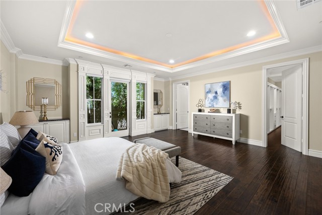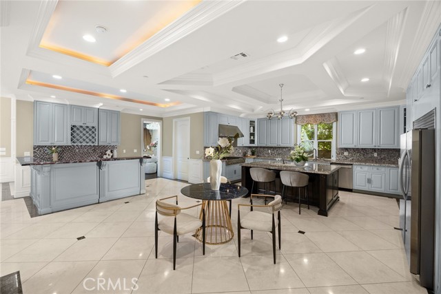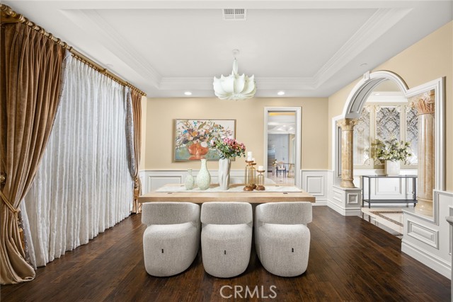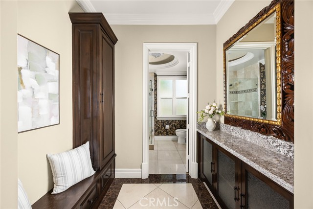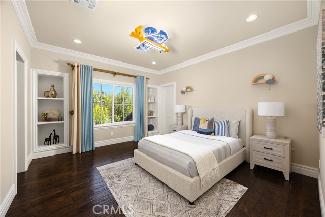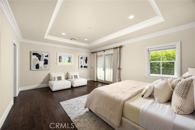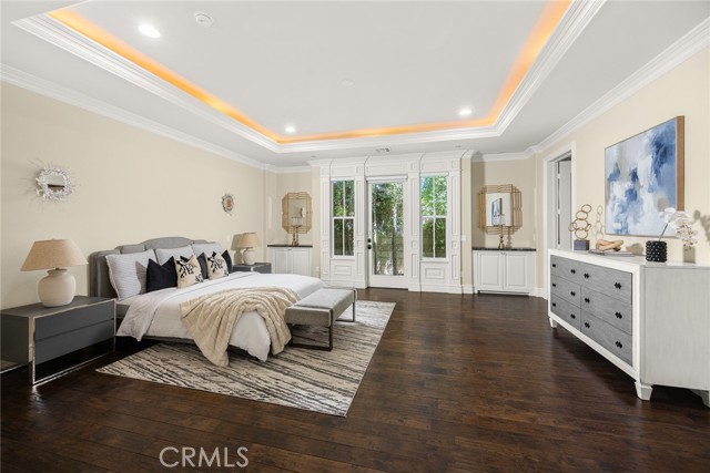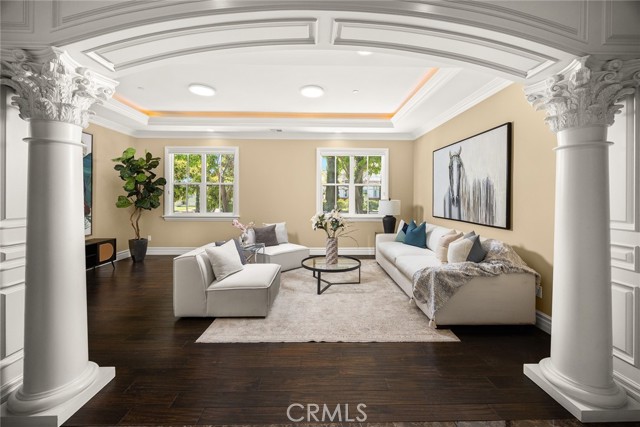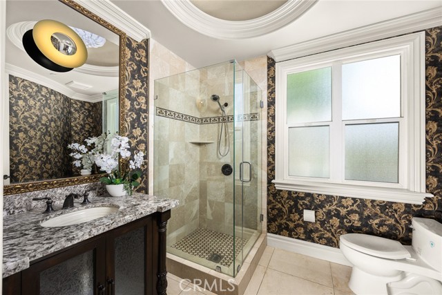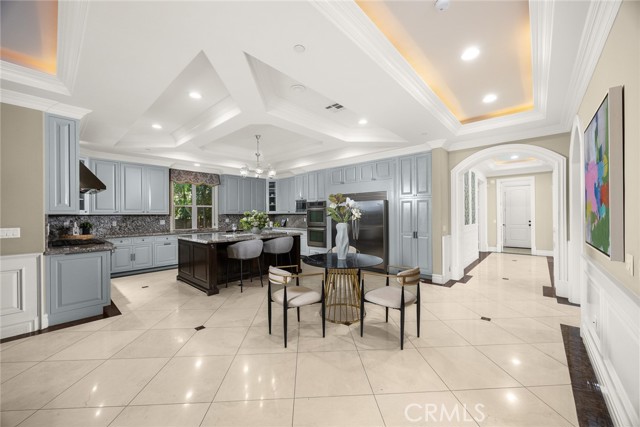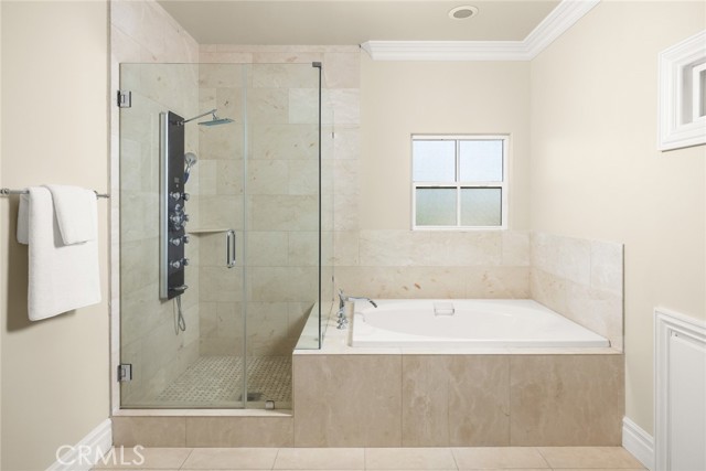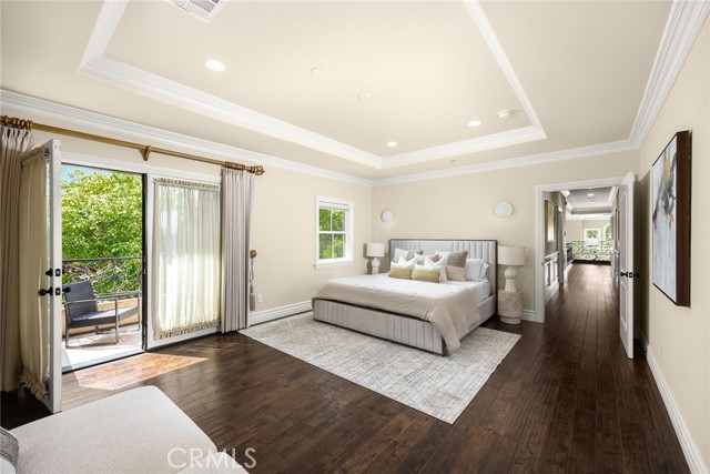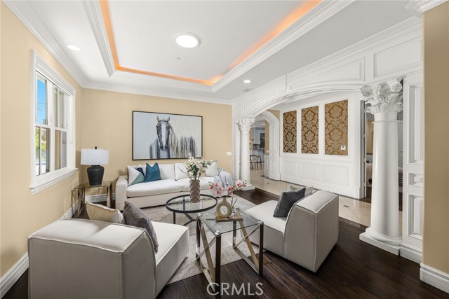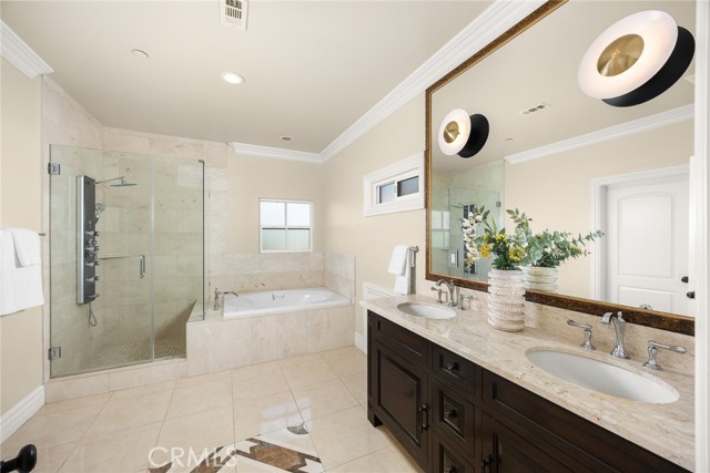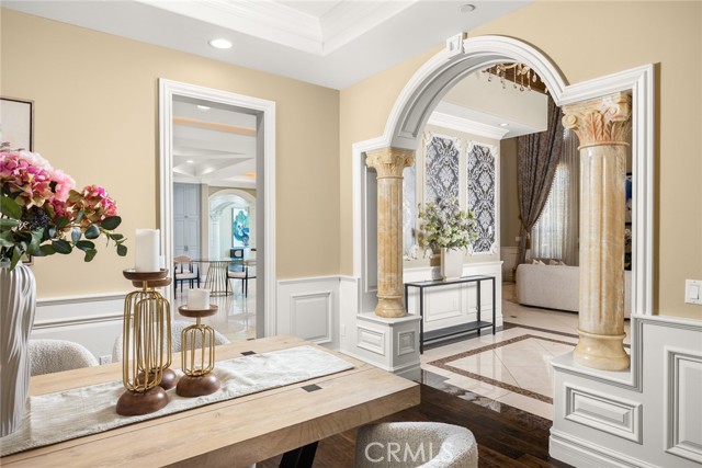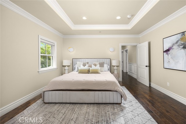 Elegant Mediterranean-style residence located in the highly desirable Baldwin Stocker district of Arcadia, offering 5 bedrooms, 5 bathrooms, and approximately 5,000 SF of living space. Built in 2016, this custom home features a dramatic 25-foot ceiling entry with a 10-foot arched iron and glass double door. The bright living room includes a stone fireplace and soaring windows, while the formal dining room is enhanced by onyx Roman columns and an expansive bar area. The gourmet kitchen offers a center island, abundant cabinetry, a dedicated wok kitchen, additional refrigerator space, and a breakfast nook. The spacious family room is ideal for entertaining or everyday living. The main-level primary suite features a walk-in closet, dual vanities, soaking tub, and oversized shower. Upstairs includes a second primary en-suite with private balcony, an open office area, and additional bedrooms with a Jack-and-Jill bathroom.Additional highlights include solar panels, attached 2-car garage with direct access, an additional 1-car garage, and gated driveway. Low-maintenance backyard and side yard provide comfortable outdoor space. Conveniently located near award-winning Arcadia schools, supermarkets, dining, and shopping. A rare opportunity to own a newer custom home in one of Arcadia’s most sought-after neighborhoods.