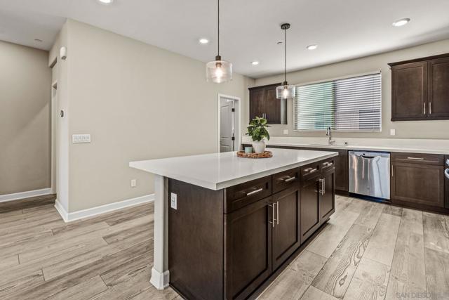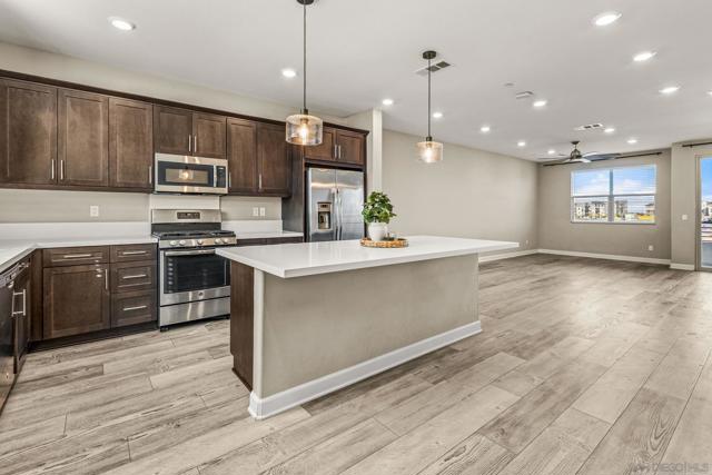 Welcome to this beautiful 3-story townhome in the highly desirable Millenia community, where modern living meets thoughtful design in a vibrant, purpose-built neighborhood. This 4 bed, 3.5 bath home offers a versatile floor plan with a first-floor bedroom and its own en-suite—perfect for guests, a private home-office, or multigenerational living. The open-concept main level features quartz countertops, shaker cabinets, and durable vinyl wood plank flooring throughout the first and second floors. Upstairs, you'll find the primary bedroom and en-suite, 2 additional bedrooms and full bathroom, along with the convenience of an in-home washer and dryer. Enjoy modern conveniences including smart home features, a whole-house water softener, solar, and wired WiFi throughout. An attached 2-car garage is complemented by ample street and guest parking. Beyond the home, Millenia offers resort-style amenities including a pool, parks, community garden beds, and multiple recreation areas featuring picnic spaces, BBQ grills, and games like cornhole, ping pong, foosball, and horseshoes. Residents also enjoy access to tennis, pickleball, and basketball courts. Millenia is conveniently located near shopping, dining, hiking trails, and Otay Ranch Town Center. Welcome to this beautiful 3-story townhome in the highly desirable Millenia community, where modern living meets thoughtful design in a vibrant, purpose-built neighborhood. This 4 bed, 3.5 bath home offers a versatile floor plan with a first-floor bedroom and its own en-suite—perfect for guests, a private home-office, or multigenerational living. The open-concept main level features quartz countertops, shaker cabinets, and durable vinyl wood plank flooring throughout the first and second floors. Upstairs, you'll find the primary bedroom and en-suite, 2 additional bedrooms and full bathroom, along with the convenience of an in-home washer and dryer. Enjoy modern conveniences including smart home features, a whole-house water softener, solar, and wired WiFi throughout. An attached 2-car garage is complemented by ample street and guest parking. Beyond the home, Millenia offers resort-style amenities including a pool, parks, community garden beds, and multiple recreation areas featuring picnic spaces, BBQ grills, and games like cornhole, ping pong, foosball, and horseshoes. Residents also enjoy access to tennis, pickleball, and basketball courts. Millenia is conveniently located near shopping, dining, hiking trails, and Otay Ranch Town Center.