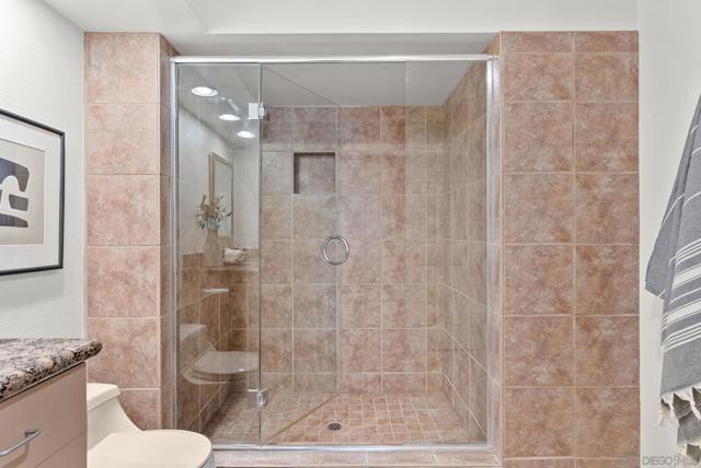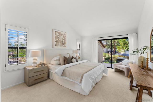 Located in the highly sought-after Sea Point Tennis Club community, this second-story condo offers an exceptional combination of comfort, functionality, and value in the heart of La Costa. Freshly updated and move-in ready, recent improvements include fresh interior paint, brand new stainless steel appliances, and new carpet, making this an outstanding opportunity for the next owner. The spacious living room features soaring vaulted ceilings that fill the home with natural light, along with a fireplace that creates a warm and inviting focal point. The open kitchen flows seamlessly into a large dining area or secondary family room, offering a versatile and functional layout ideal for everyday living and entertaining. The desirable floor plan includes two primary bedrooms, each with its own private bathroom, creating ideal separation and flexibility for guests, family, or roommates. Additional features include in-unit laundry, ample storage with two large patio storage closets, a one-car garage, and an additional reserved parking space. Sea Point Tennis Club is one of La Costa’s most popular communities, offering resort-style amenities including two pools, three spas, and four tennis courts. Ideally located near top-rated schools, shopping, dining, golf, and convenient freeway access, this is a fantastic opportunity to enjoy the best of the La Costa lifestyle.