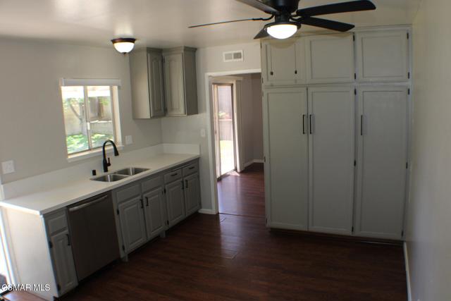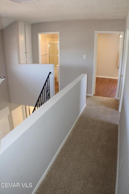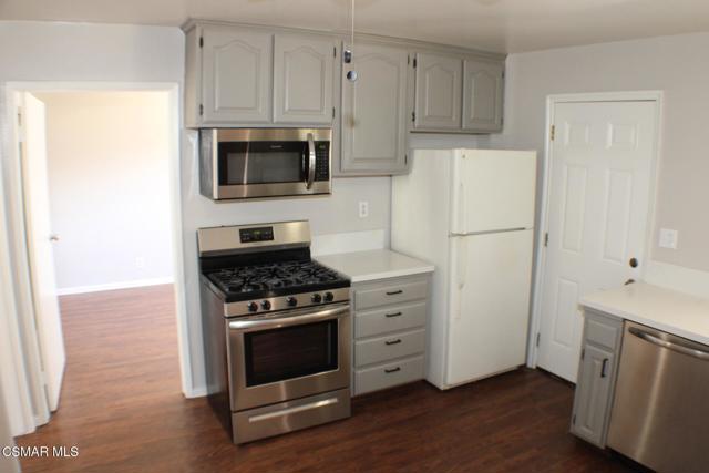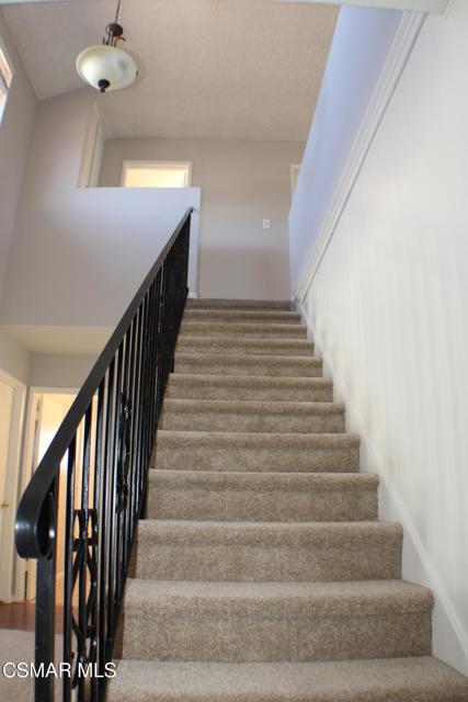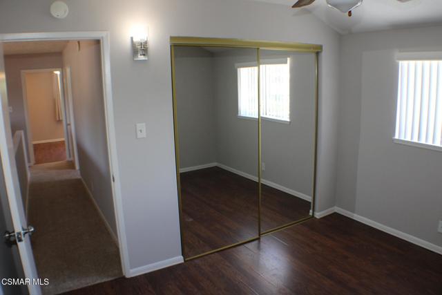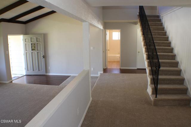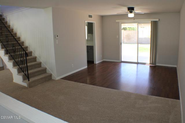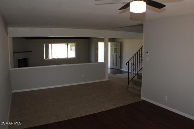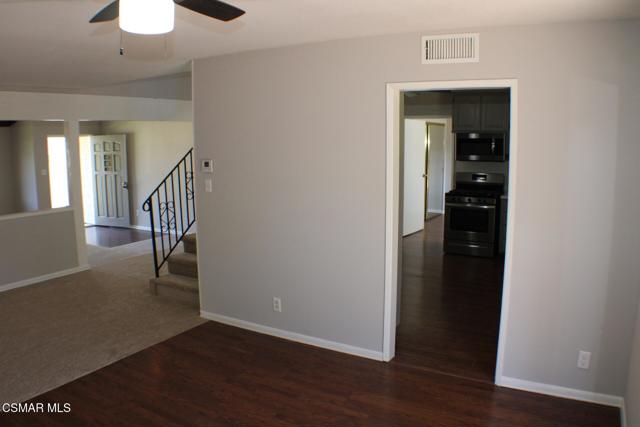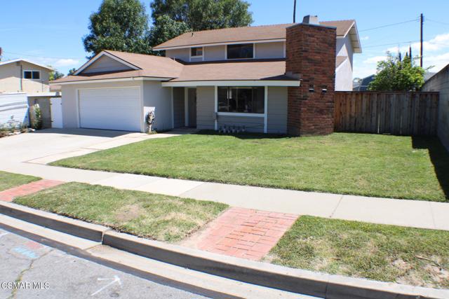 Fresh interior paint! New carpet! Clean and ready for move-in! Roomy 5 bedroom, 2 bath Simi Valley home with one bedroom and full bath downstairs. Open floor plan with a large living room with high ceiling, fireplace and open to the dining area. Nice kitchen includes quartz type counter tops, stainless steel sink, gas range, microwave, dishwasher, ample cabinet space and a window looking into the back yard.Home also includes new roof on rear of house, central air conditioning and heat, mirrored wardrobe doors, ceiling fans and laminate manufactured wood grain flooring. AND a covered patio, large yard, 2 car attached garage and wide concrete driveway AND perhaps room for an RV, AND NO HOA! WOW!