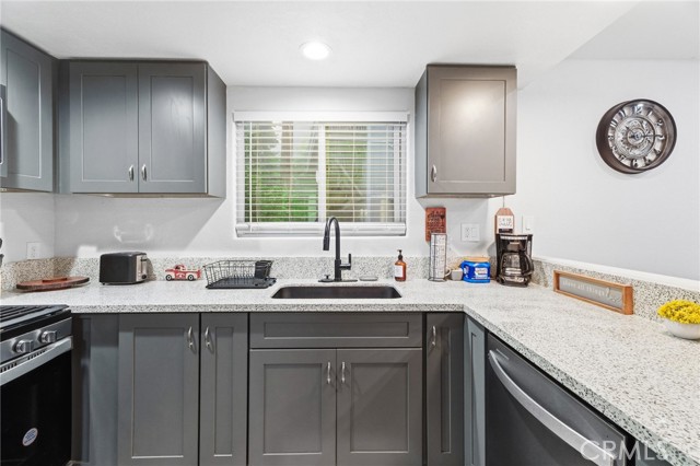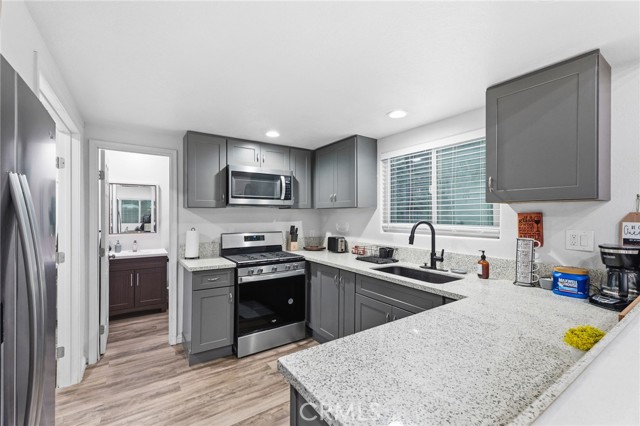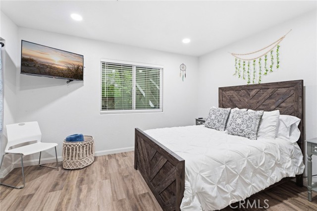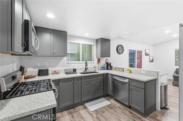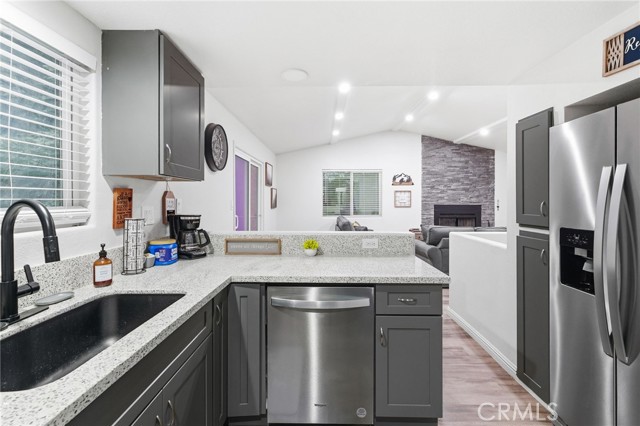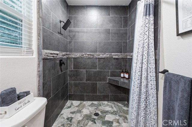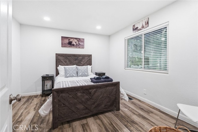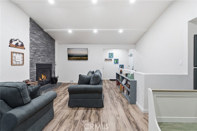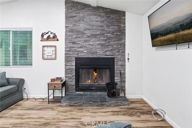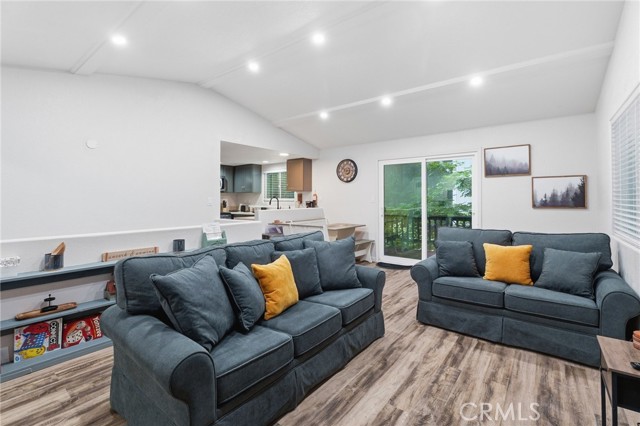 Tucked among towering pines just minutes from Lake Gregory, local shops, and great dining, this beautifully updated cabin is your perfect mountain getaway. Enjoy the best of both worlds…peaceful forest living with everything you need close by. Inside, you'll find a fully renovated interior with luxury vinyl plank flooring, recessed lighting, and a stunning floor-to-ceiling stacked stone fireplace. The updated kitchen features gray shaker cabinets, quartz countertops, stainless steel appliances, and a gas range. The open layout flows nicely into a cozy dining nook with sliding doors leading to your private deck overlooking the trees. Two charming bedrooms with warm, boho-style decor offer a restful escape after a day of mountain adventures. Multiple deck levels give you plenty of outdoor space to relax and take in the natural beauty all around you. Your mountain retreat is ready and waiting!