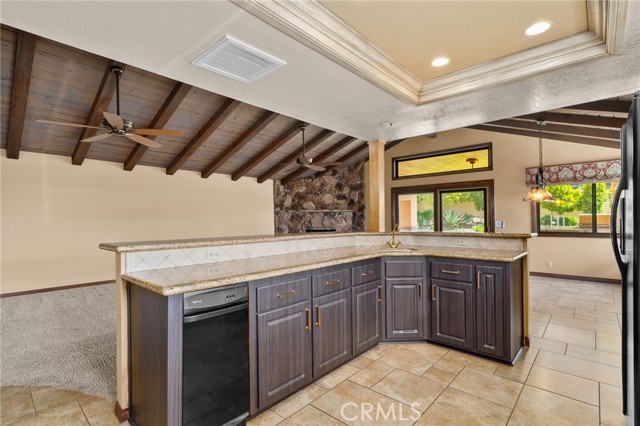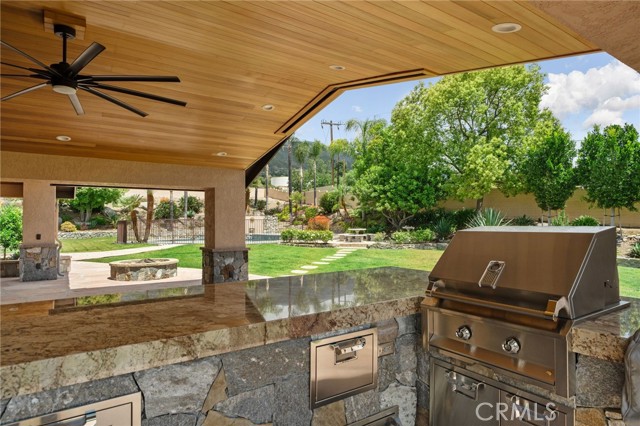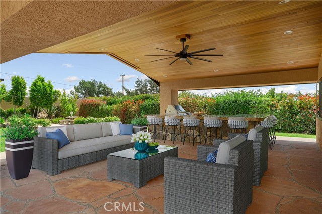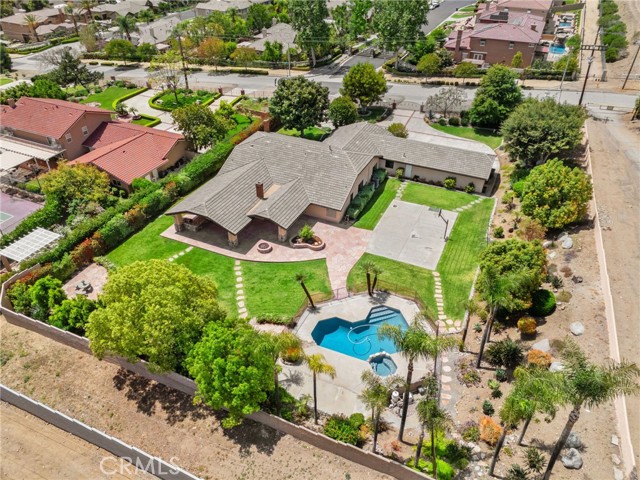 Experience elevated living in this spectacular private single-story estate nestled in the highly desirable Alta Loma community. This well-maintained home offers four spacious bedrooms and three full bathrooms, thoughtfully designed for both comfort and functionality. Step inside to find a built-in library, a large family and dining room area anchored by a cozy fireplace, and an inviting open-beam, pitched ceiling that enhances the expansive family room and kitchen. The kitchen features a dedicated dining nook, perfect for casual meals and gatherings. The luxurious primary suite boasts pitched ceilings and an enormous walk-in closet, creating a true retreat within the home. A versatile bonus game room or potential ADU sits at the front of the property, complete with a full bathroom and bar—ideal for guests, extended family, or easy conversion to a separate living space. Outdoor living is just as impressive, with a brand-new back patio featuring a custom barbecue island, a basketball court, and a beautifully fenced pool and spa with heater. Enjoy breathtaking mountain views with no homes to the north, offering exceptional privacy. Recent upgrades include a new roof and generator, ensuring peace of mind for years to come. The fully landscaped grounds are equipped with automatic sprinklers and secured by gated entry. Car enthusiasts will appreciate the three-car garage with ample cabinetry, a separate EV meter, and convenient attic storage with pull-down access. This exceptional property combines privacy, space, and modern amenities—an incredible opportunity to own a standout home in Alta Loma.