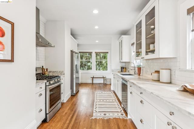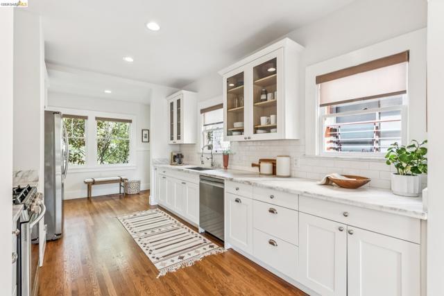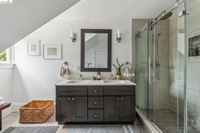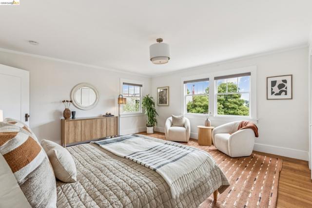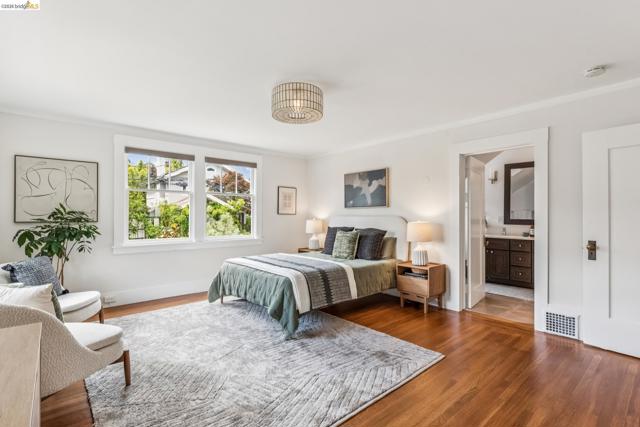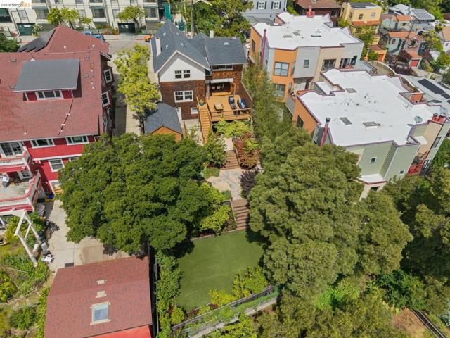 Set in the heart of Oakland’s coveted Grand Lake/Rose Garden neighborhood, this regal Brown Shingle is a rare blend of classic Craftsman-era charm and modern living, with thoughtful improvements throughout. Restored from the ground up in 2015, prior owners addressed many major systems (foundation, roof, kitchen, baths, and more) so you don’t have to. The floor plan is a standout. Three bedrooms and two full baths are all on one level upstairs, including a spacious primary suite, an uncommon set up to find. The main level offers seamless flow between the living, dining, and kitchen spaces, with large wood-clad sliding doors opening directly to an expansive deck ideal for entertaining. The oversized lot is a true showpiece, well designed, terraced, and highly functional. Fruit trees and raised veggie beds are a gardener’s delight, while the lower levels offer room to dine, relax, and play, all while taking in views of Grand and Lakeshore Avenues. A detached cottage adds flexibility for a home office, gym, or possible in-law setup. The lower level includes a full bath and large basement ideal for storage, workshop space, or potential development. The location couldn’t be better, close to Grand, Lakeshore, and Piedmont Avenues with their bustling commercial districts, or take a stroll around quintessential Lake Merritt. And don’t forget the crown jewel of the neighborhood, the Morcom Rose Garden, located at the bottom of Jean Street and considered one of the grandest city rose gardens in the country. This property is a rare find not to be missed.